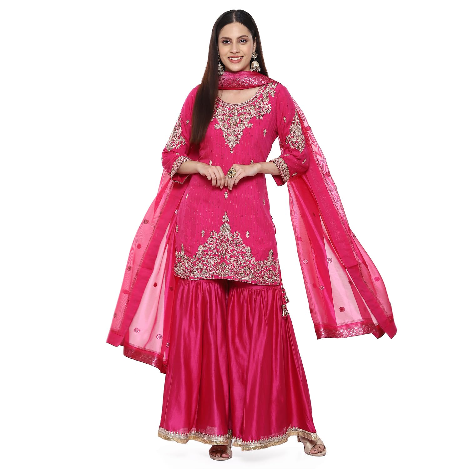 BIBA Women Viscose Embroidery Straight Salwar Kurta Dupatta(Skdkinari8925_Fuchsia_38), Purple