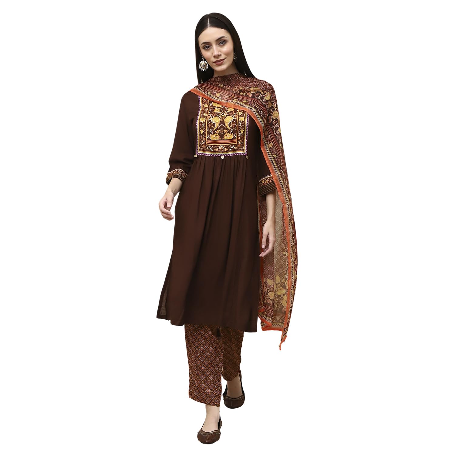 Biba Women's 30'S Rayon Kurta Set (SKDCHAR8178ESS25BRN_Brown