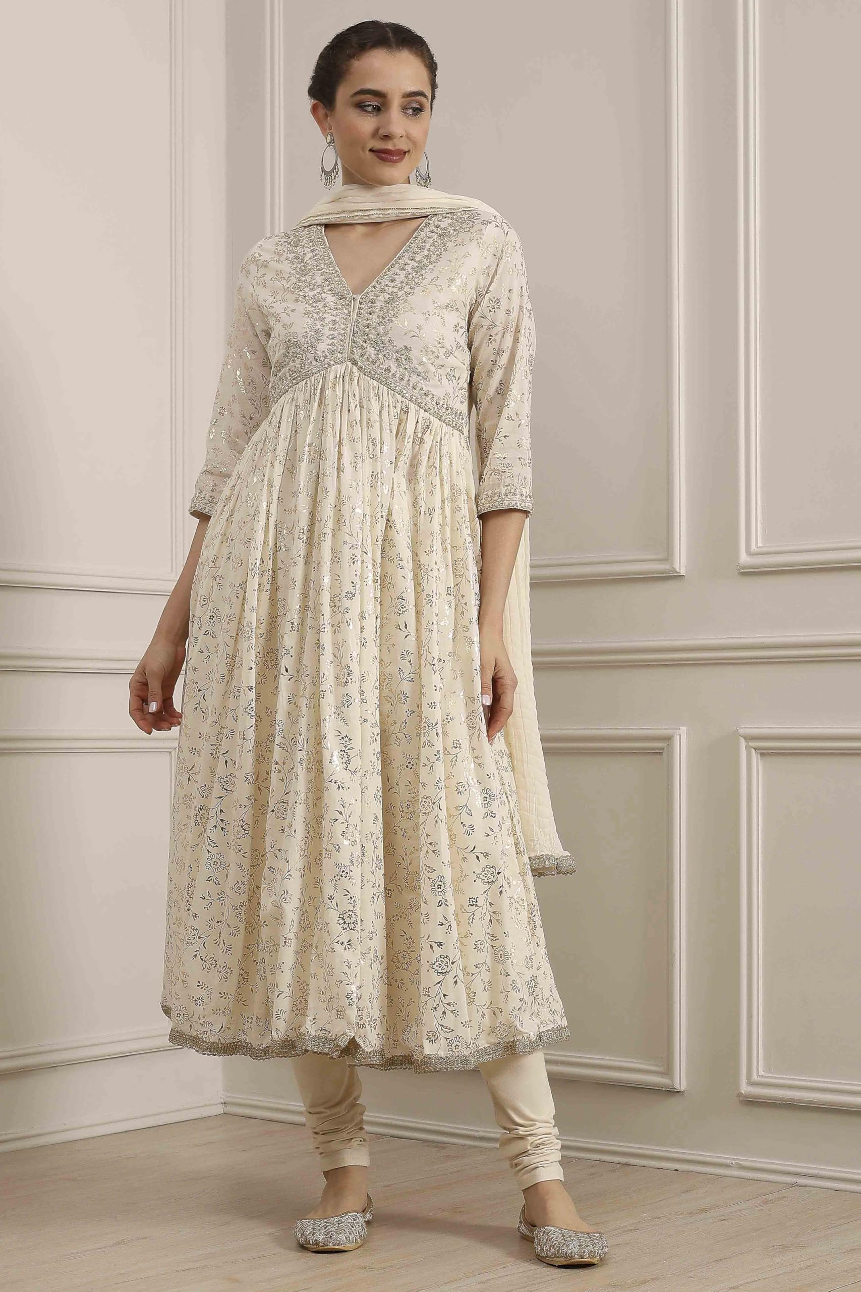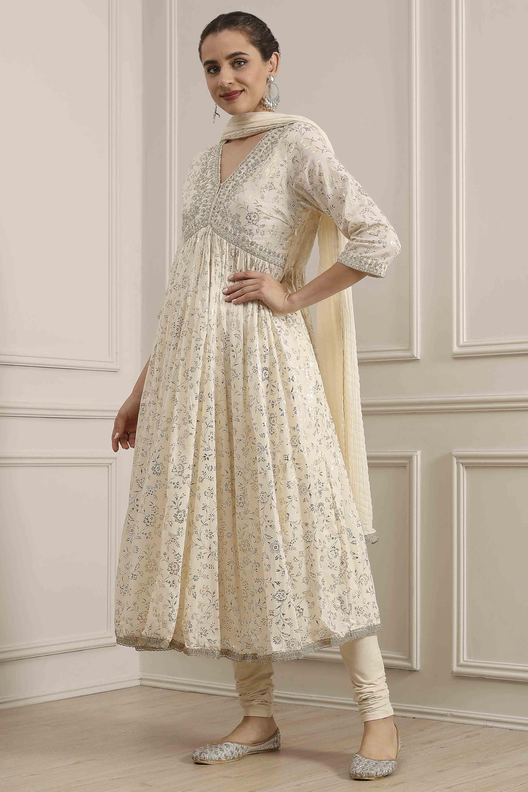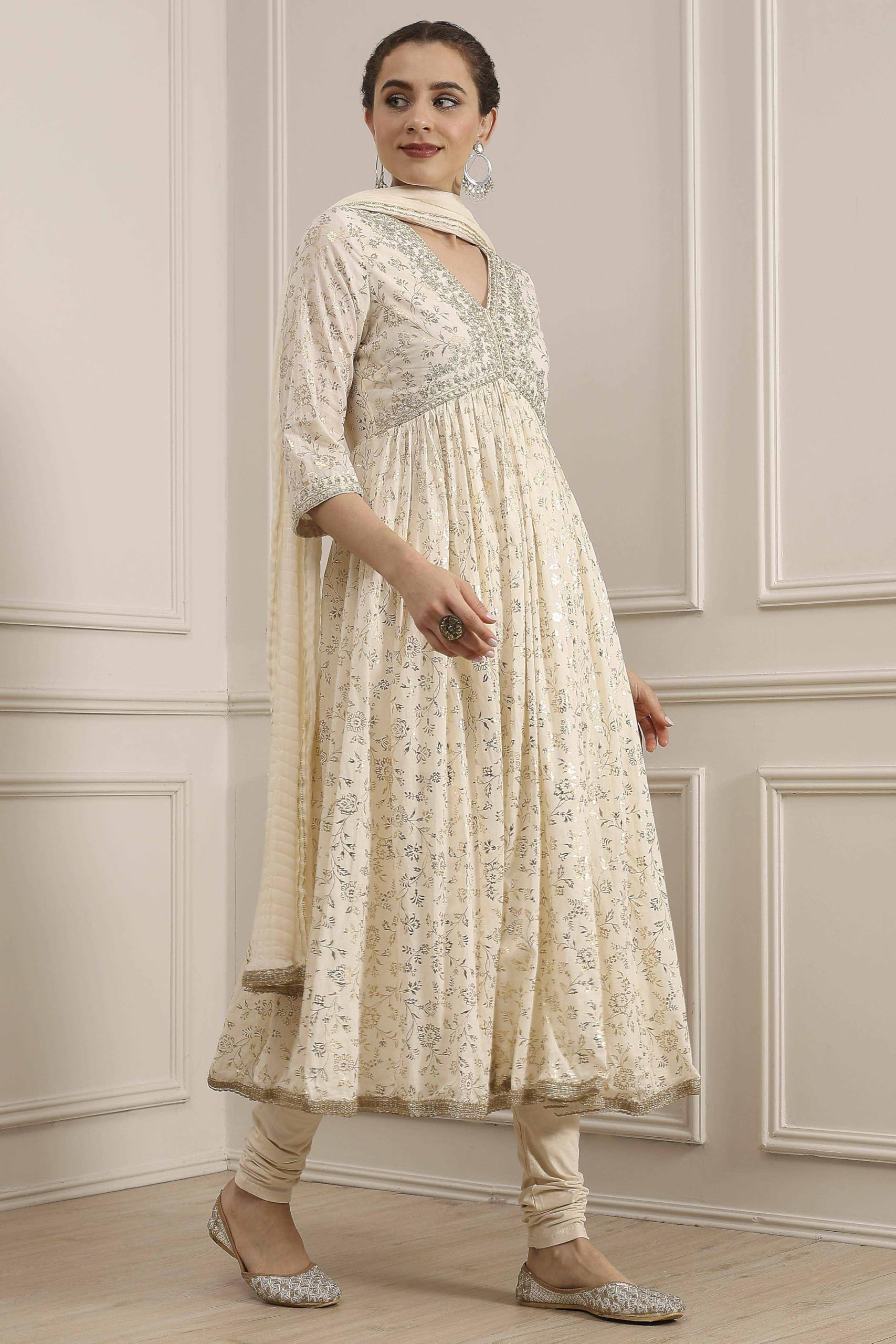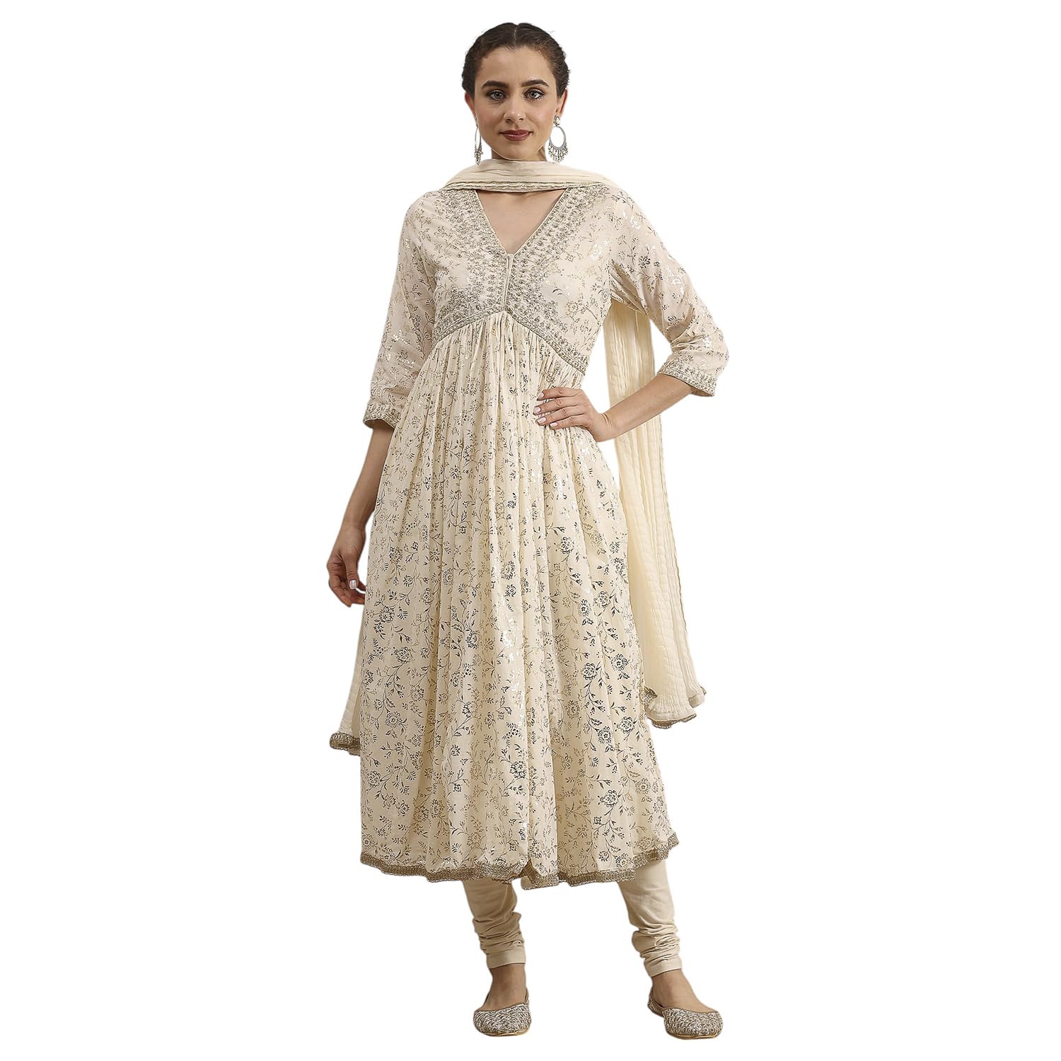 Biba Women's Cotton Kurta, Bottom, Dupatta (SKDMRIGL31132AW25OWHT