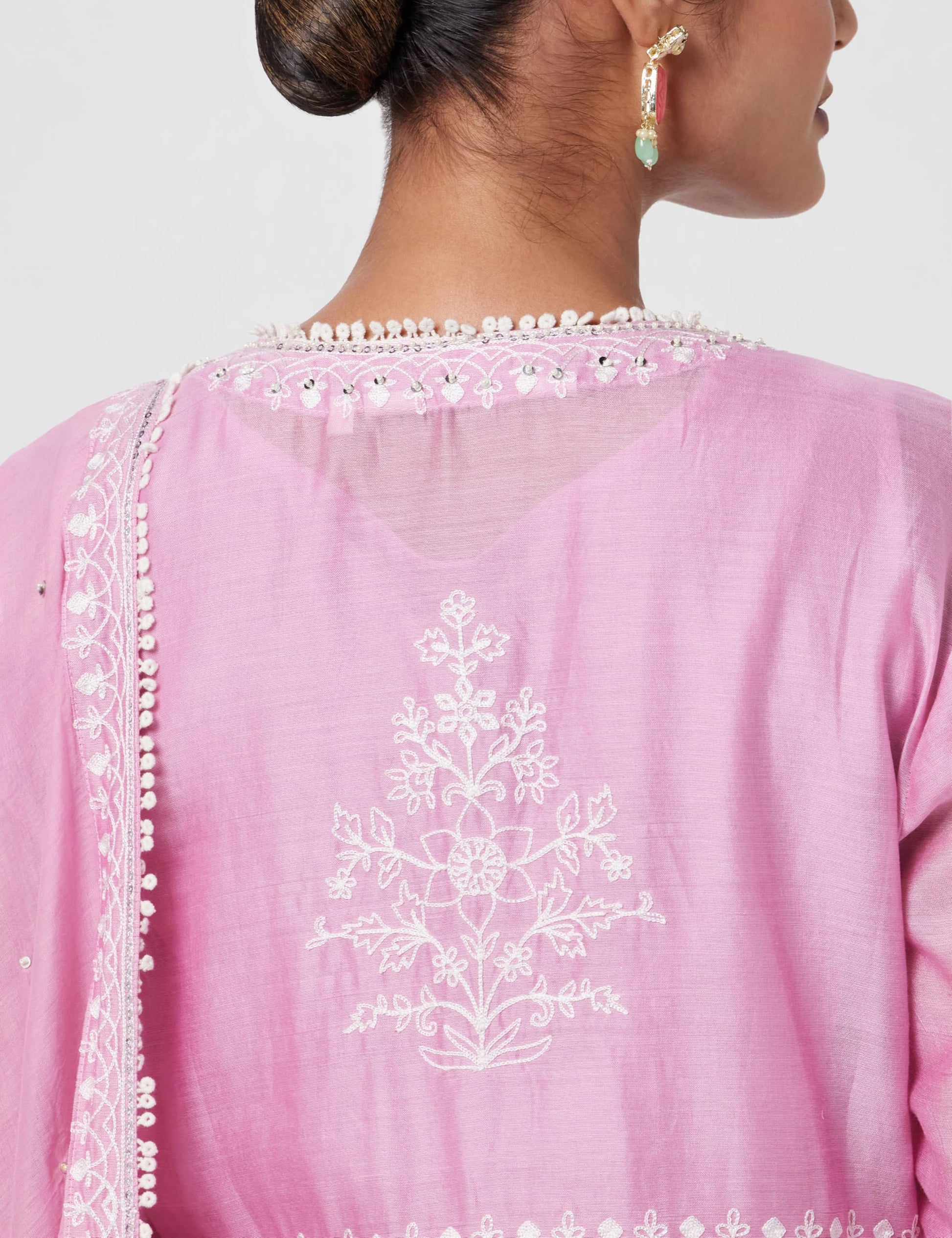 Biba Womens Coral Cotton Blend Gathered Kurta Palazzo Suit Set