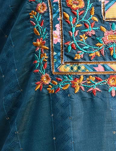 BIBA Women's Ethnic Blue Cotton Kurta Suit Set (Size_3XL)