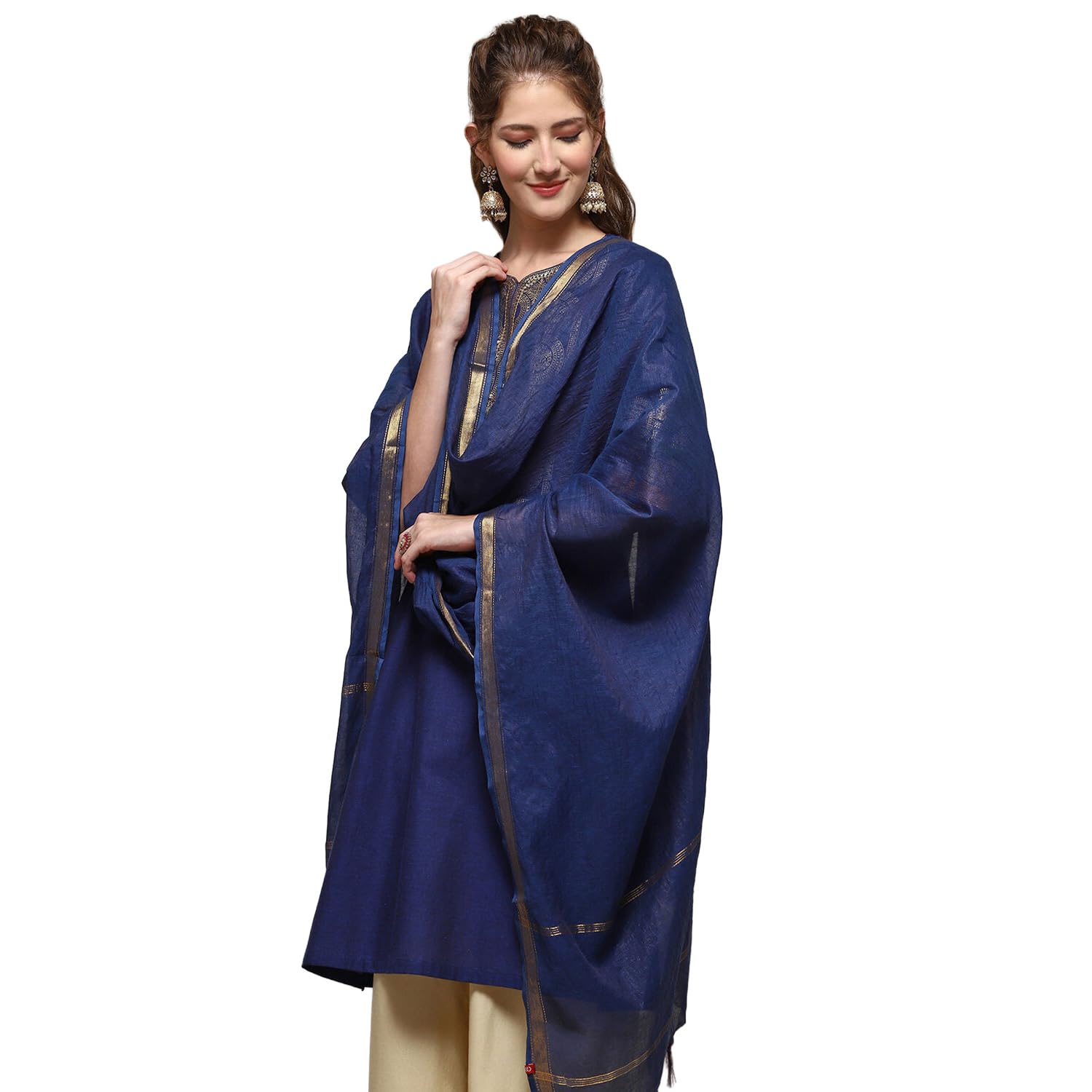 BIBA Women's Navy Cotton Blend Yarn dyed Dupatta