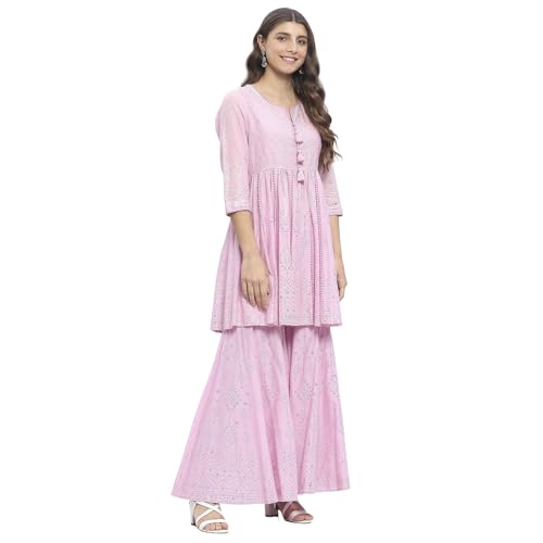 Biba Women's Pink Cotton Kalidar Kurta Sets_40
