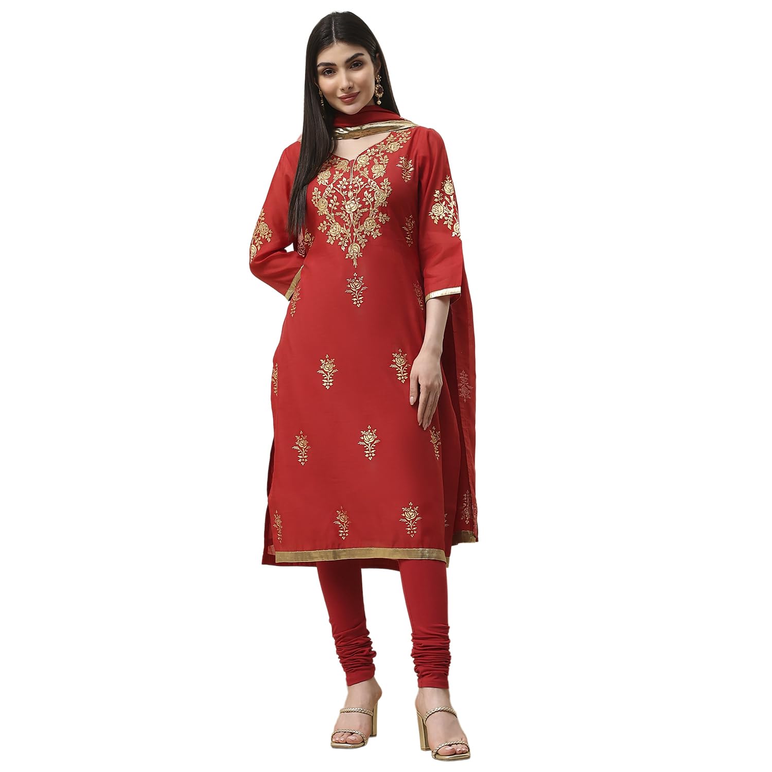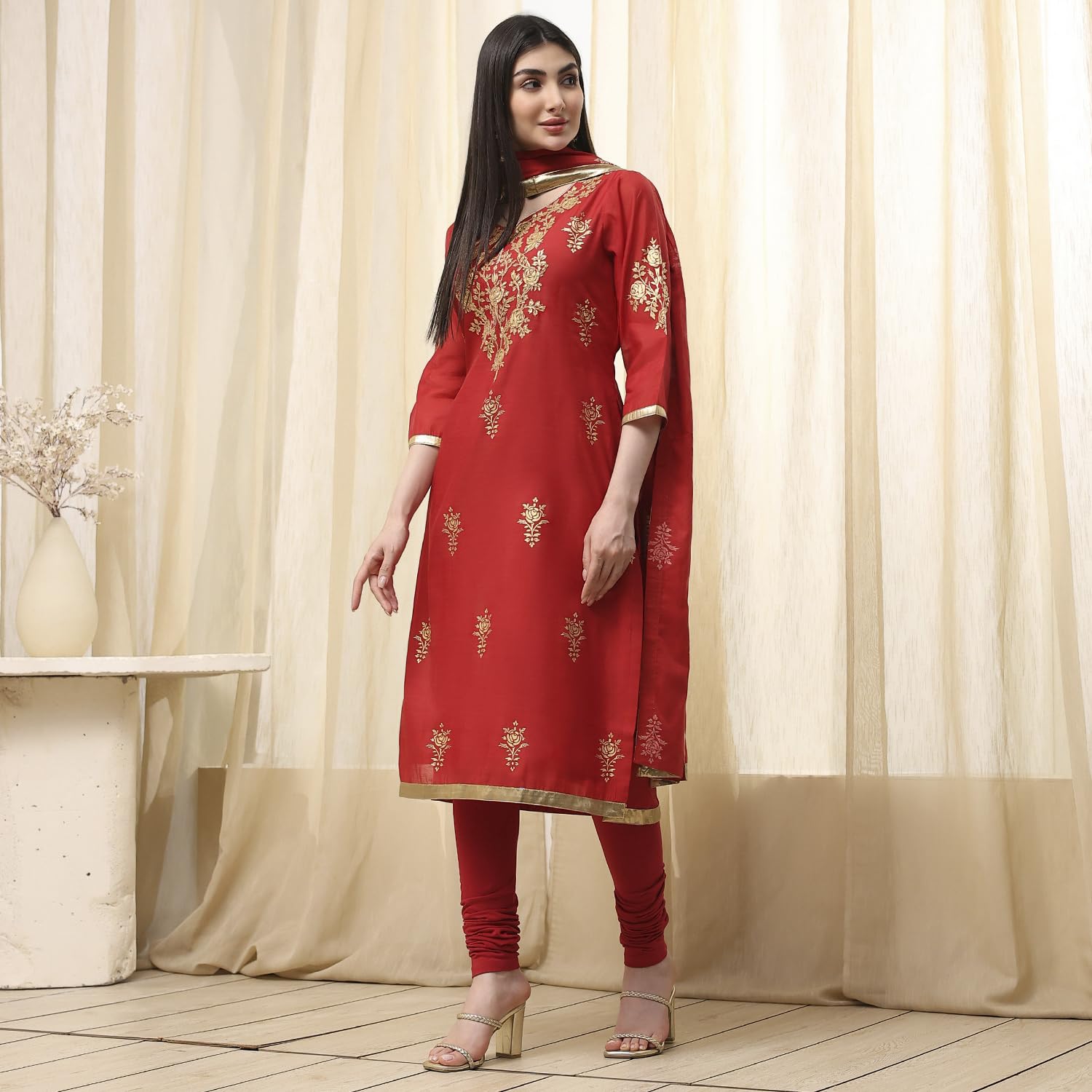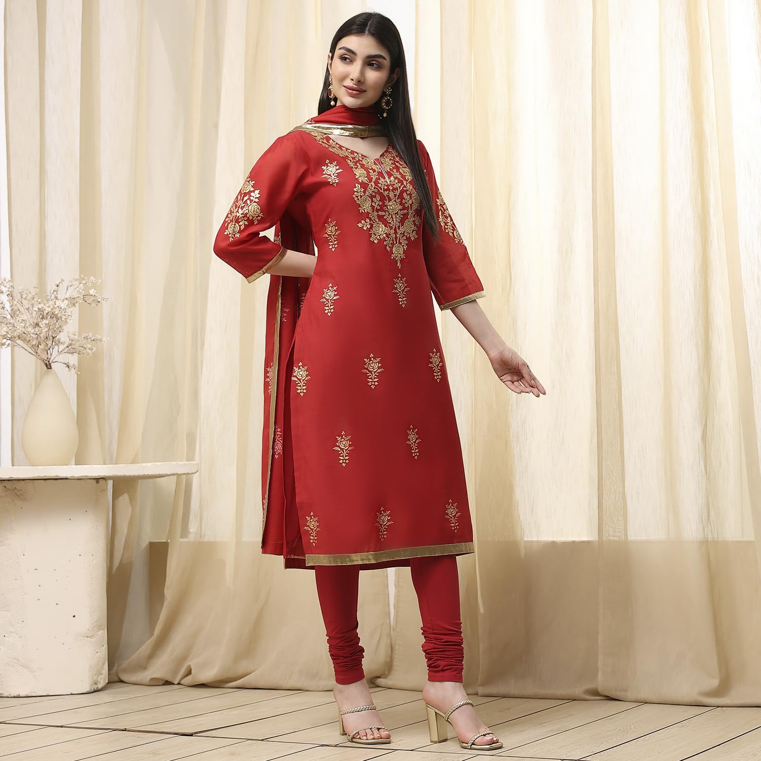 Biba Women's Poly Chanderi Kurta Set (SKDASRT7716ESS25RED_Red