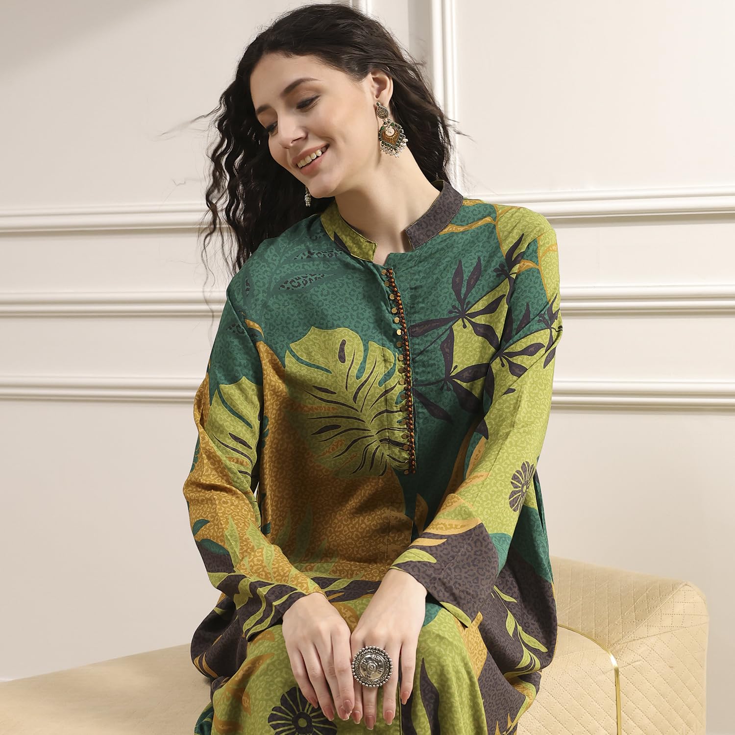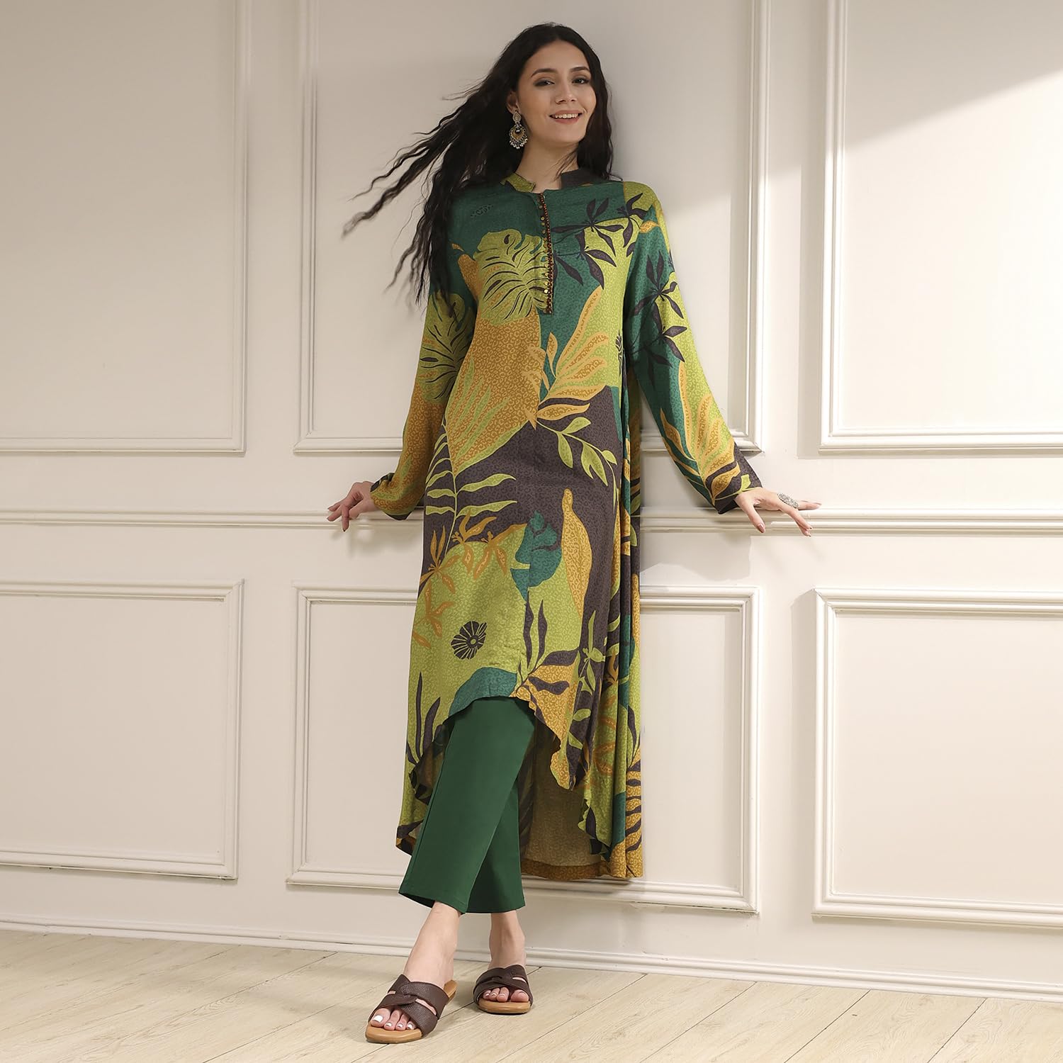 BIBA Women's Rayon Printed Straight Kurta
