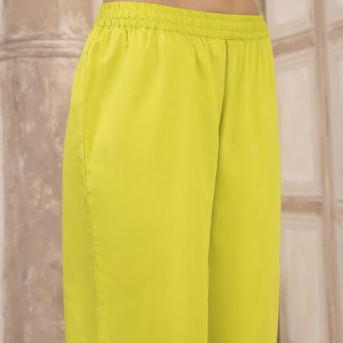 Biba Women's Silk Kurta Set (SKDTMETWEV30287AW25LIM_Lime Green