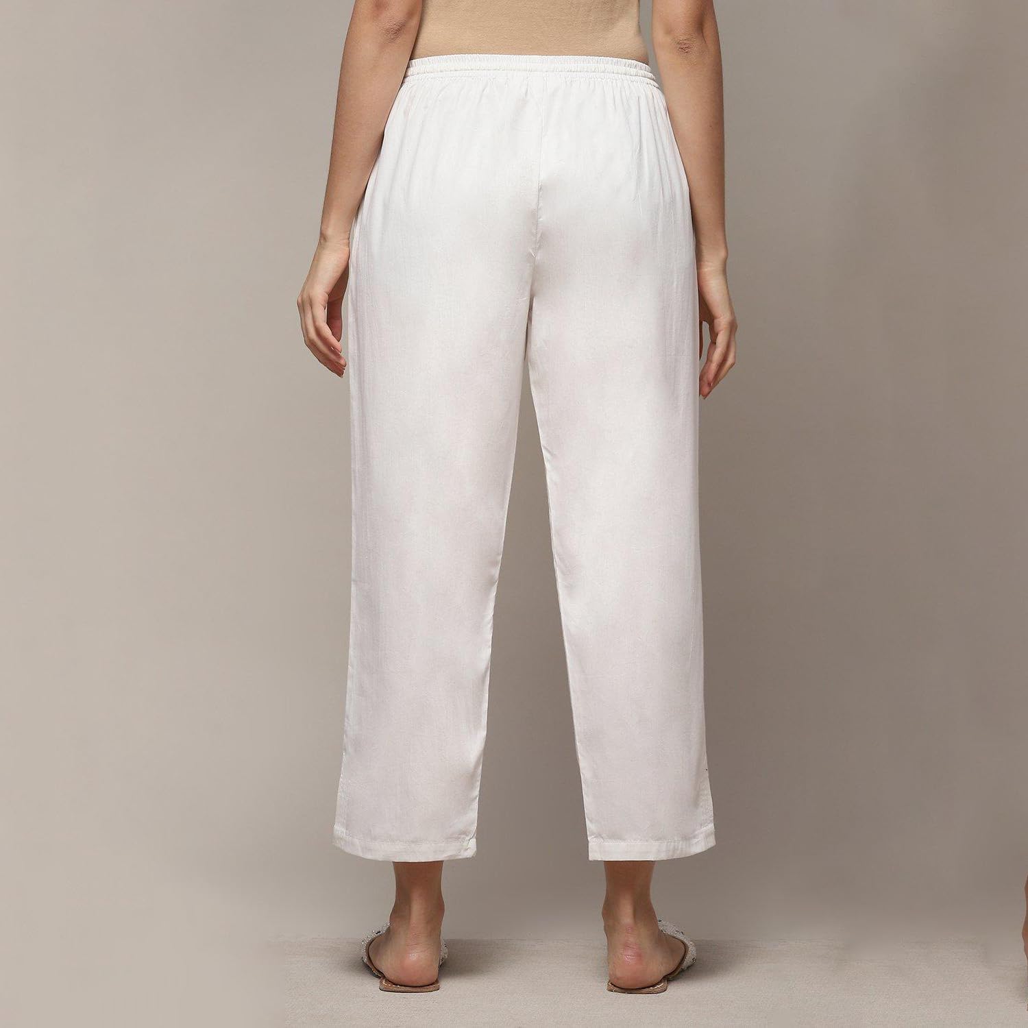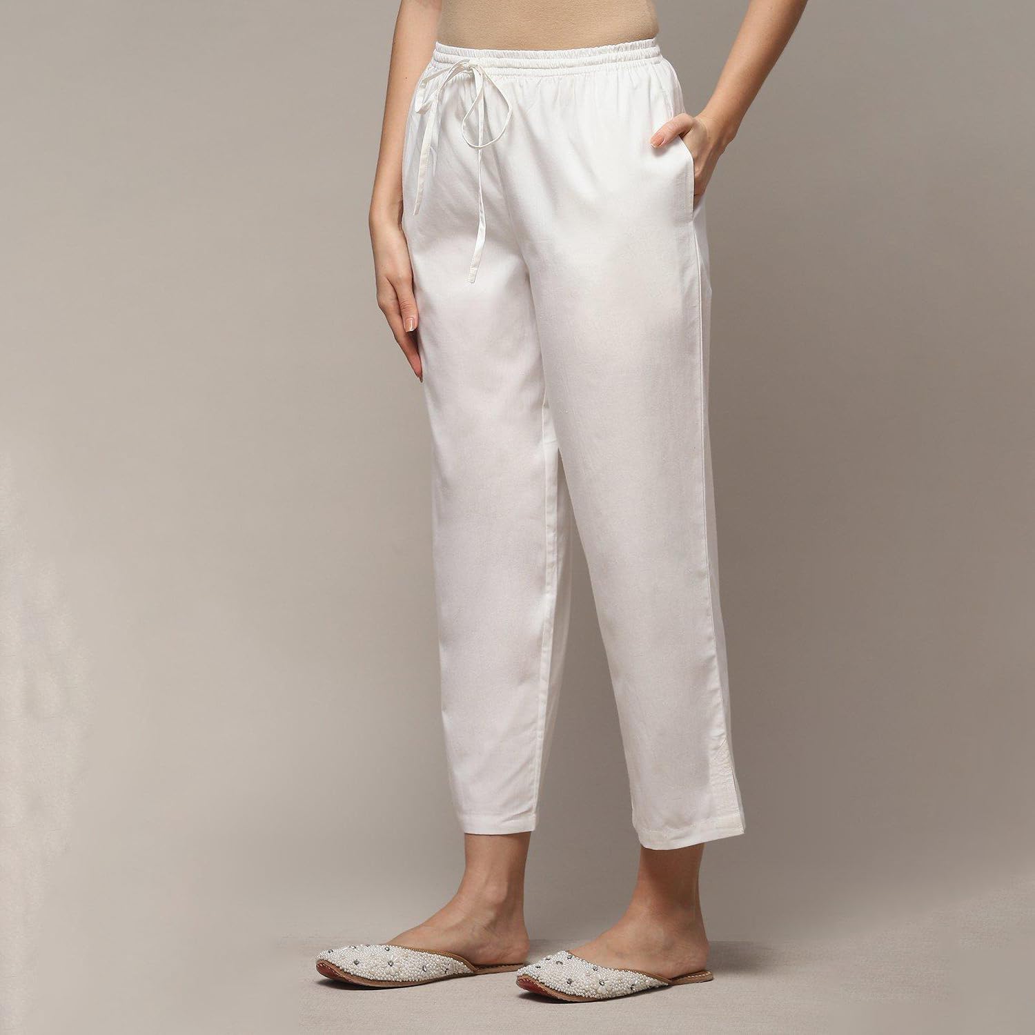 Biba Women's Solid Bottom Wear Regular Trousers (Bottom W14910_Off White_Large)