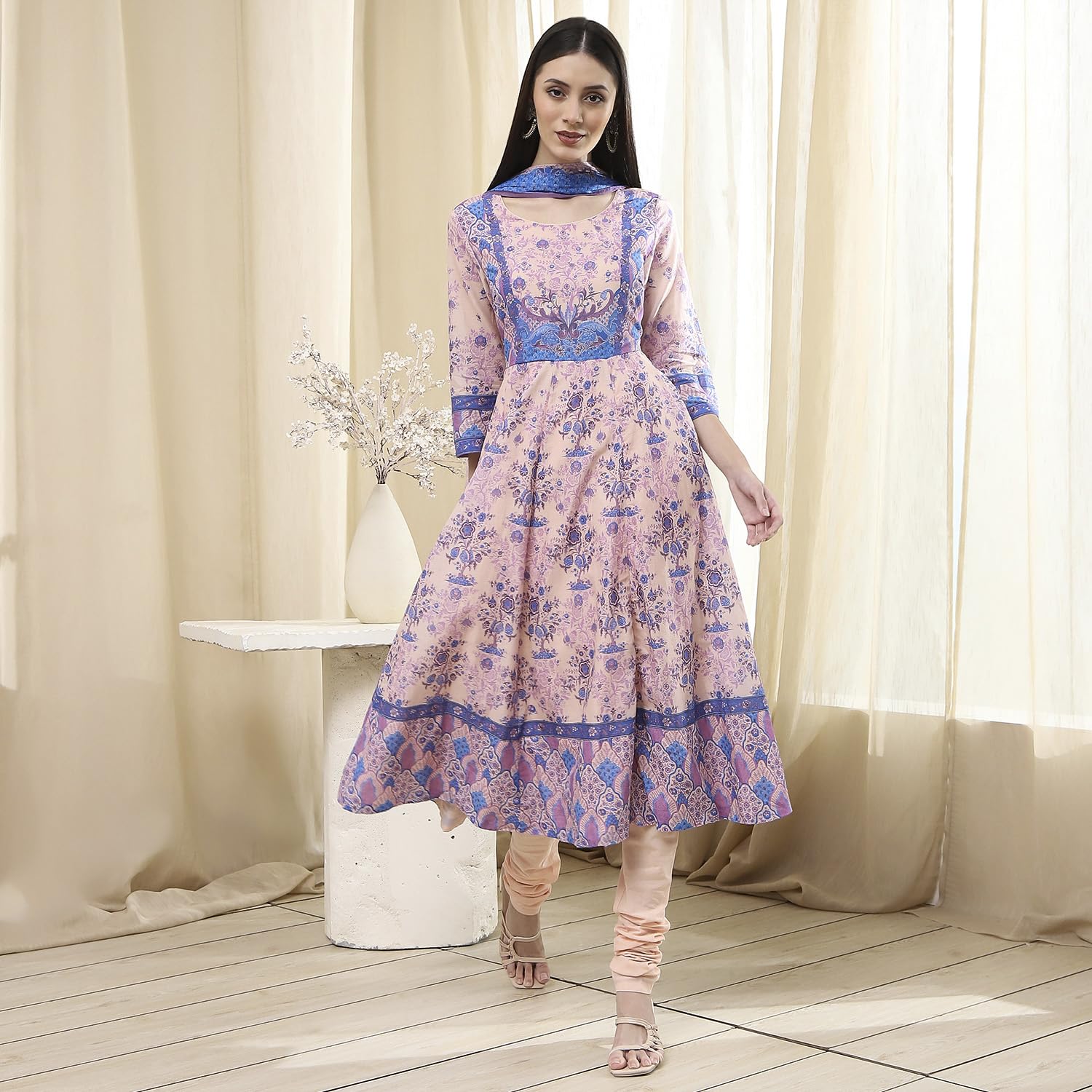 Biba Women Light Pink Cotton Fitted Kurta Set