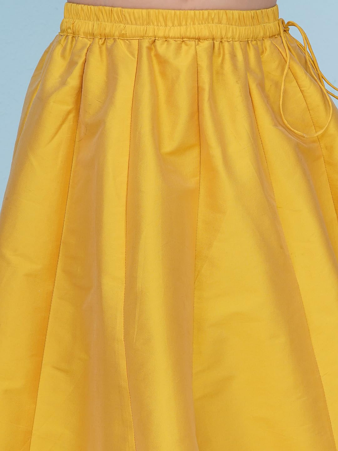 Bitiya by Bhama Girls Boho Design Yellow Pink Embroidered Choli & Ready to Wear Lehenga With Dupatta.