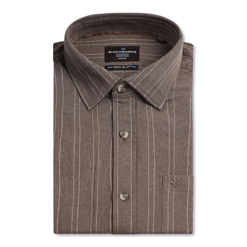 blackberrys Men Chocolate Sauce India Slim Fit Shirt | Deep Brown Solid Shirt with Full Sleeves, Tailored Construction and Refined Styling | Size 38