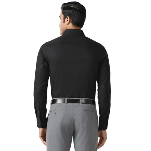 blackberrys Men Formal Black India Slim Fit Shirt | Structured Formal Wear with Clean Finish, Full Sleeves, Classic Design for Office & Business Use | Size 38
