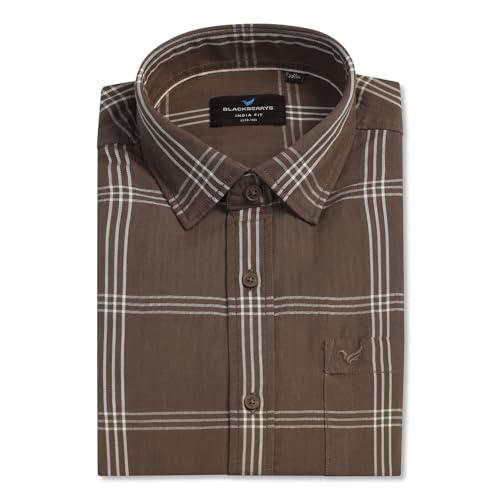 blackberrys Men Khaki India Slim Fit Shirt | Solid Khaki Shirt with Full Sleeves, Streamlined Construction and Versatile Formal Styling | Size 42