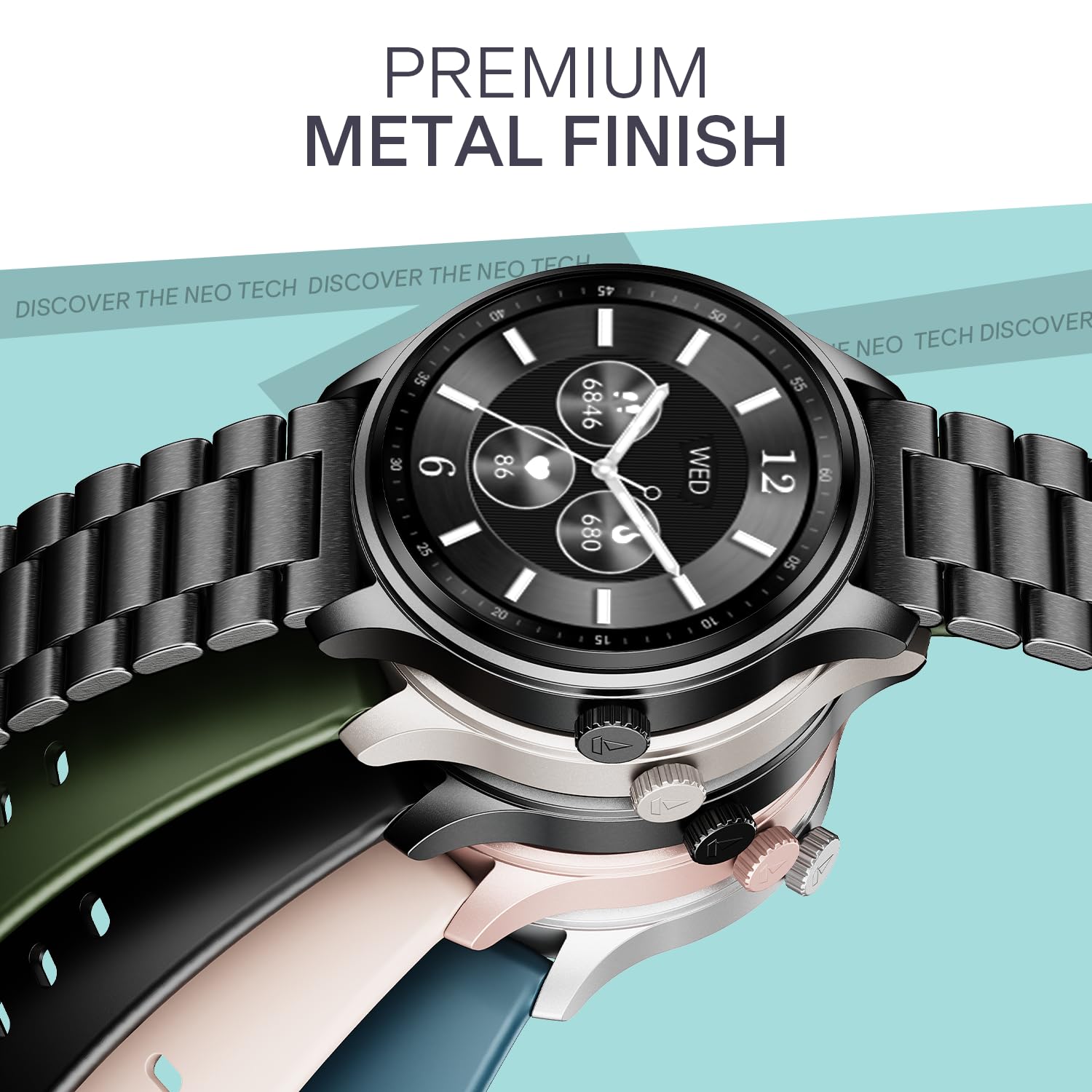 - Health & Wellness Tracking: At the core of Lunar Discovery Neo is the high-performance sensors, powering a premium smartwatch experience. Get reliable results for heart rate, blood oxygen monitoring, and guided breathing exercises. It also tracks your sleep, everyday stress and keeps a consistent check on your physical, mental, and emotional well-being.