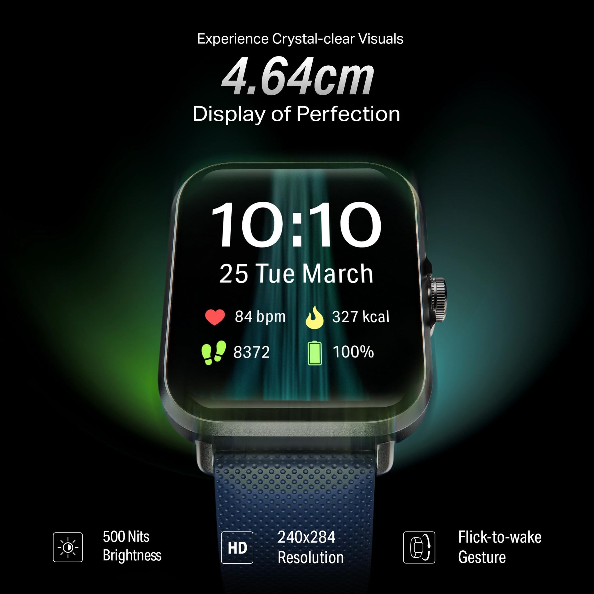 - 1.83” (4.64 cm) HD Display: Get messages, social media notifications, and more on the 1.83” HD display of the boAt Storm Infinity Smartwatch. The 240X284 resolution ensures crystal-clear clarity to check time, notifications, and stats even in the daytime.
