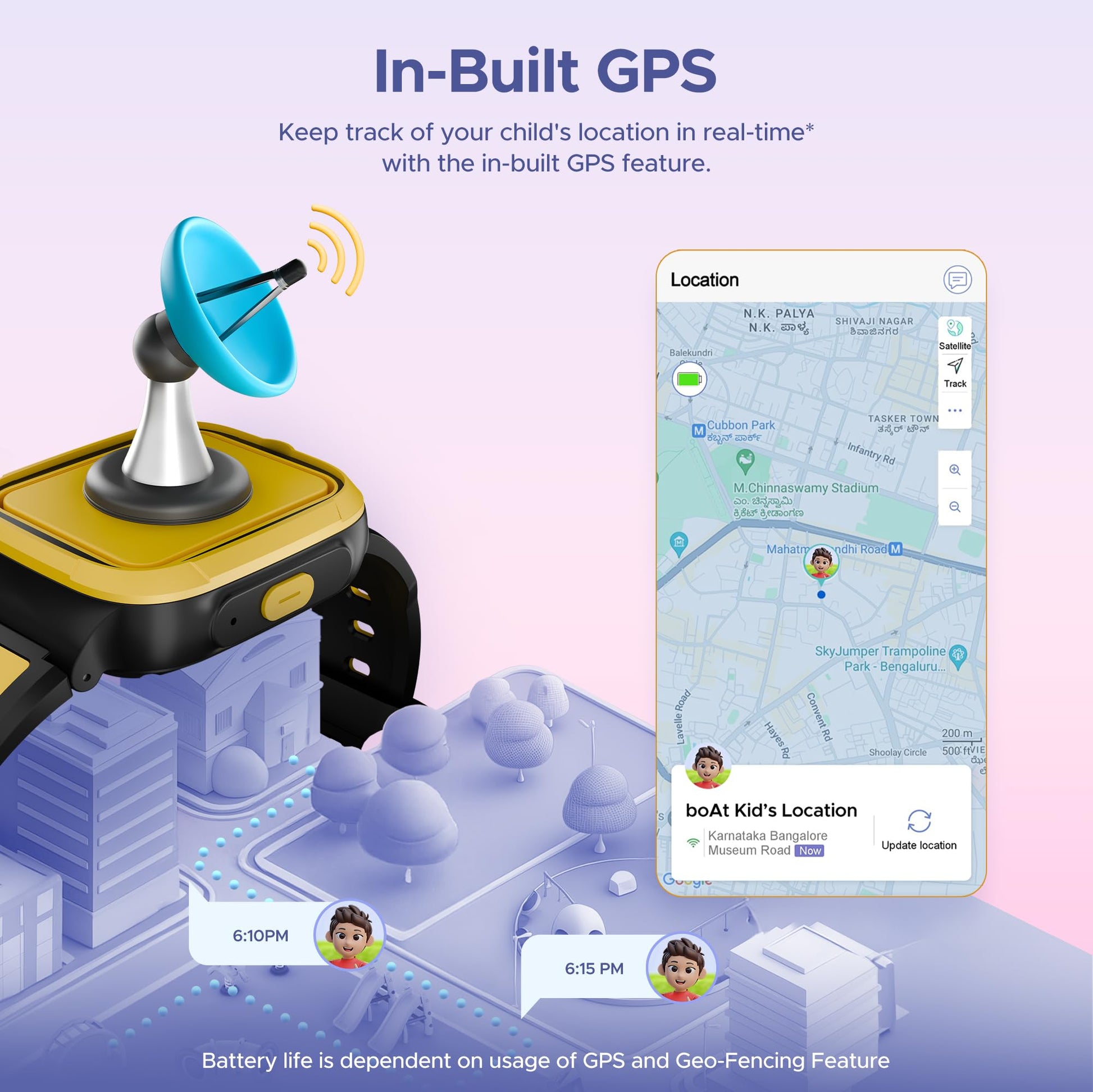 boAt Wanderer Smart Kids Watch w/ 2-Way Video & Voice Calls, SOS, Geo Fencing, Restrict Unknown Calls, Parental Controls,2MP Camera 1.43" (3.6 cm) HD Display Fitness Smart Watch (Sunshine Yellow)
