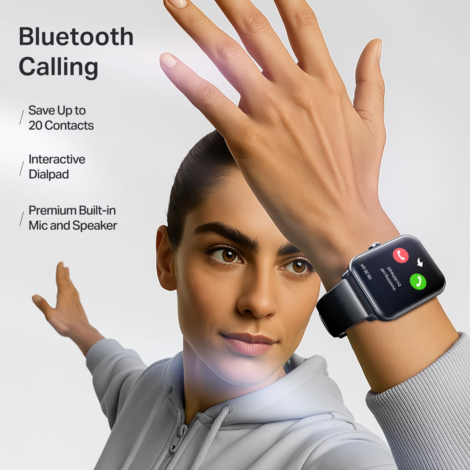 - Bluetooth Calling: With a premium built-in mic and speaker, conversations stay crisp whether you're on the move or chilling. Use the interactive dial pad and saved contacts to call without even pulling out your phone.