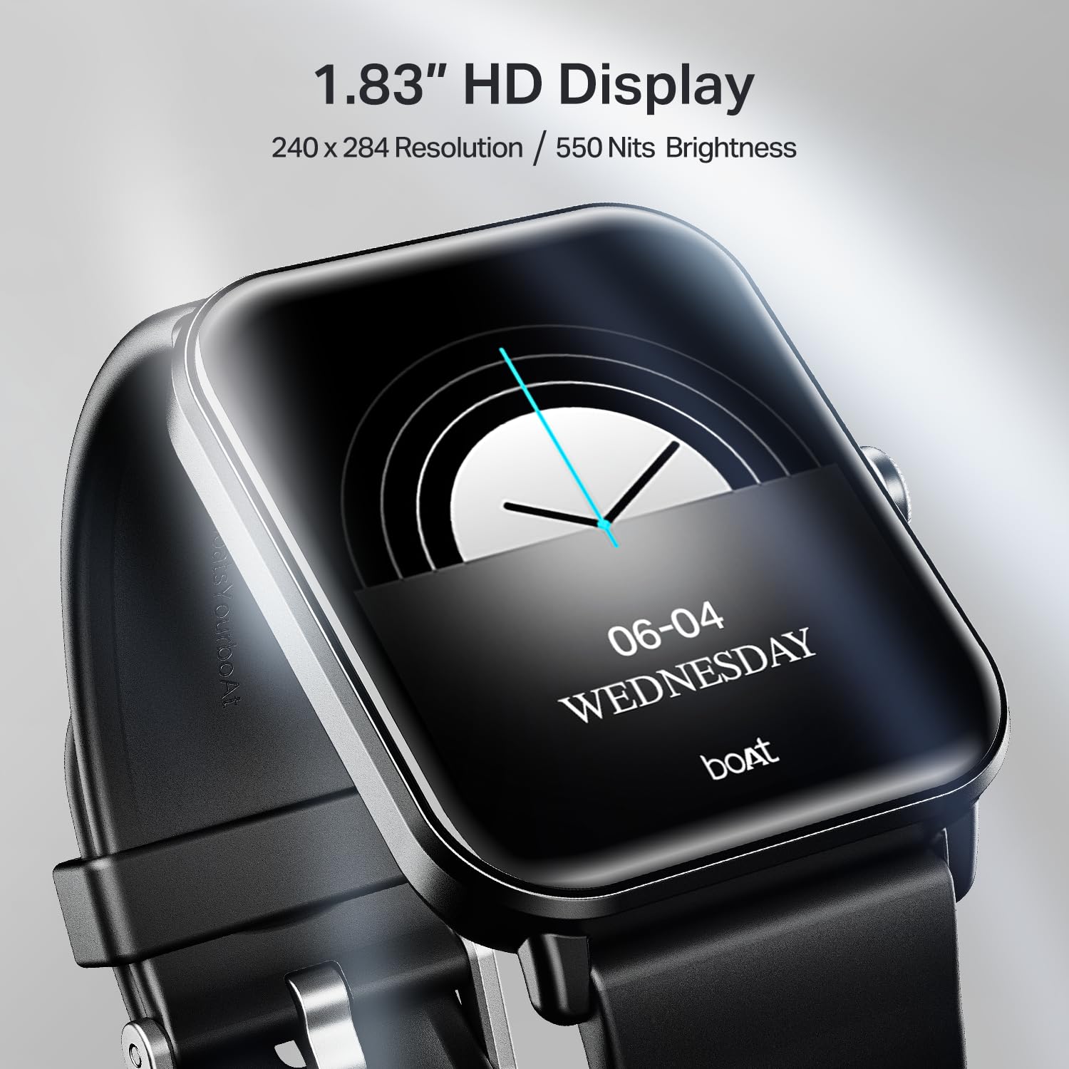 - 1.83”HD Display with Wake Gesture: The large 4.64 cm (1.83”) HD display stands out with 240x284 resolution and 500 nits brightness, offering a crystal-clear view even under bright sunlight—perfect for outdoor visibility. The wake gesture makes it super convenient to check time and updates.