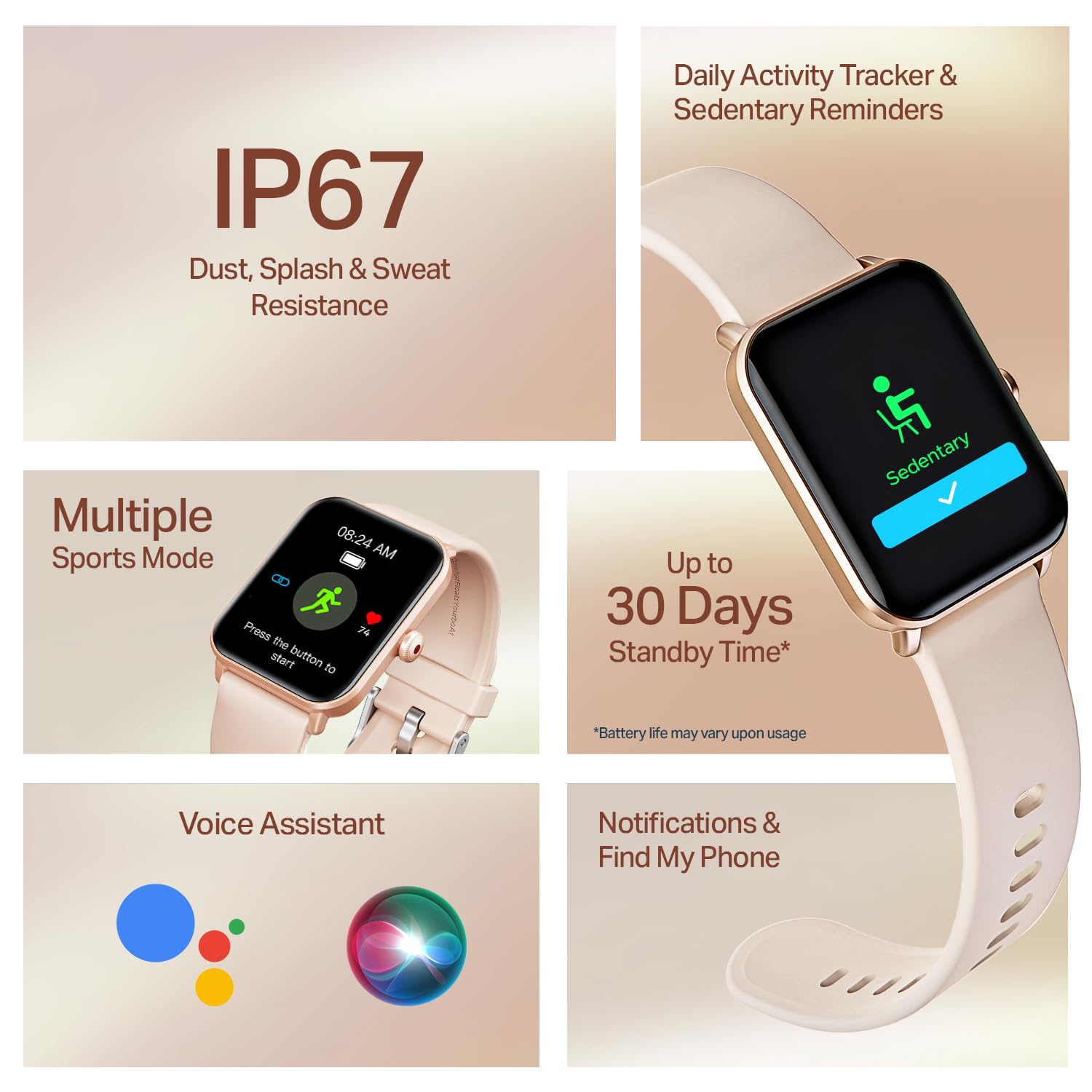 - Multiple Sports Modes with IP68: From walking and running to more niche workouts, Wave Call 2 adapts to your lifestyle with multiple sports modes like cycling, yoga, football, weightlifting & more..It is resistant to sweat, dust, and water splashes—making it reliably durable for active and outdoor environments.