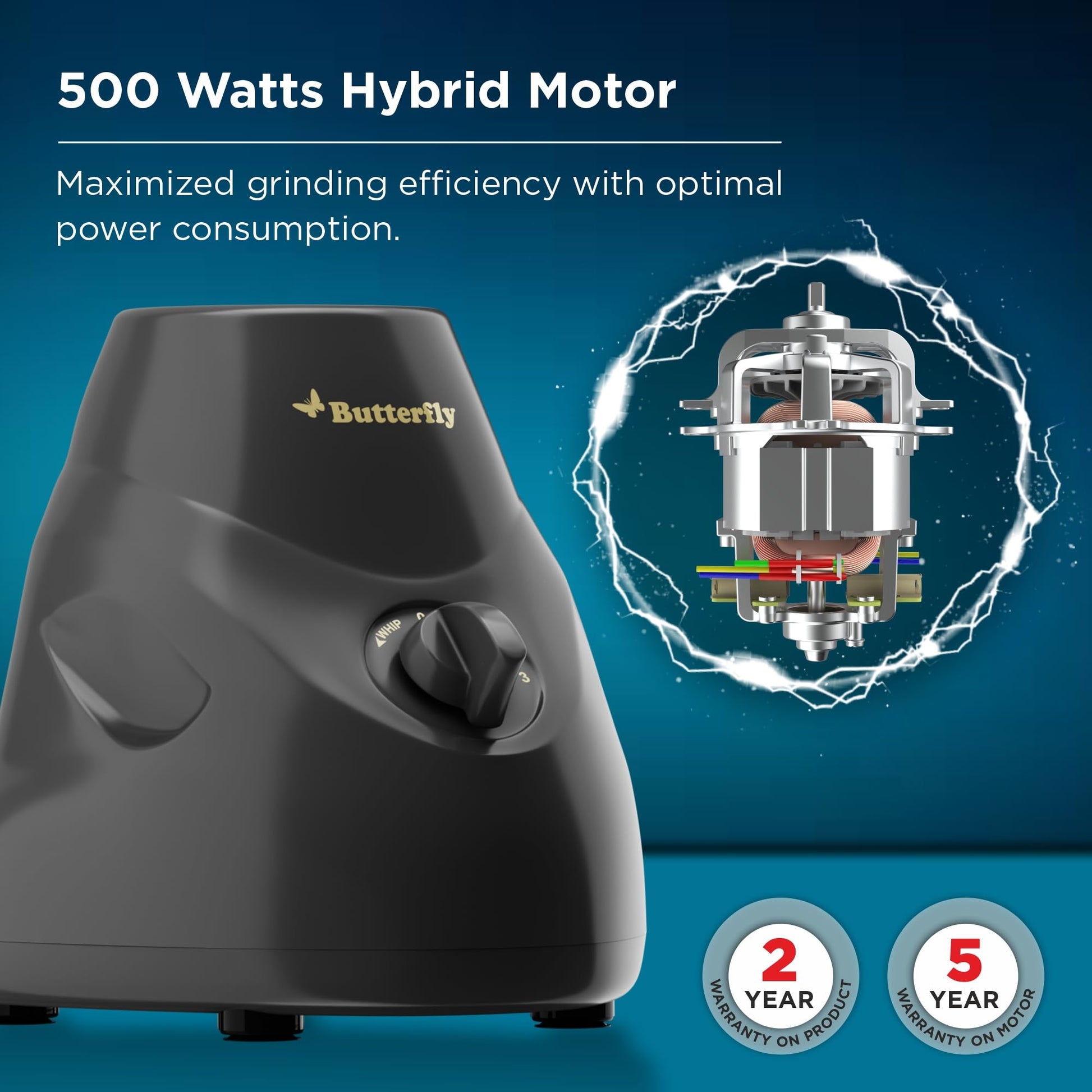 Butterfly Hero 500 Watts Mixer Grinder with 3 Jars | Stainless Steel Multipurpose Jars | ABS Body | Motor Overload Protection | 1 Year Manufacturer's Warranty | Grey