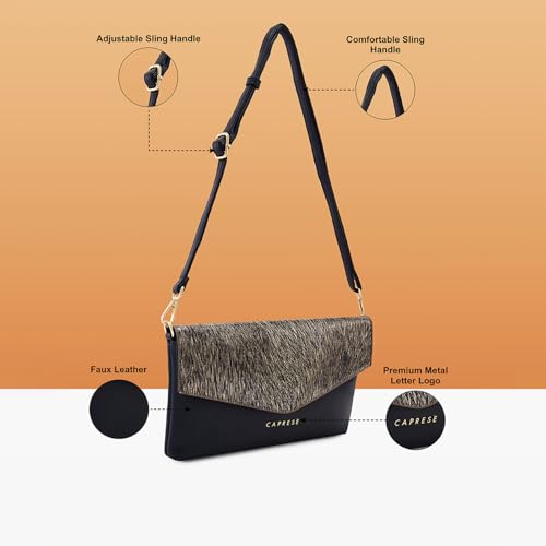Caprese Ava Clutch, Large | Versatile Clutch for Women with Adjustable & Detachable Straps & Secure Zip Closure | Stylish Shoulder Bag | Perfect for Parties, Weddings & Special Occasions (Gold)