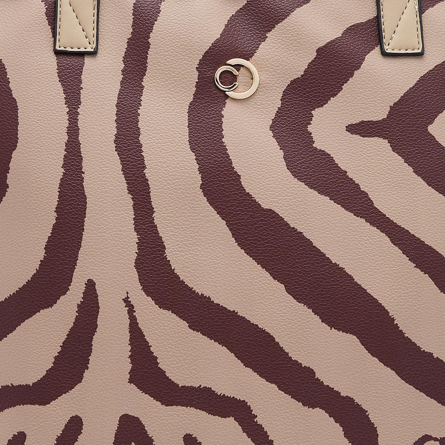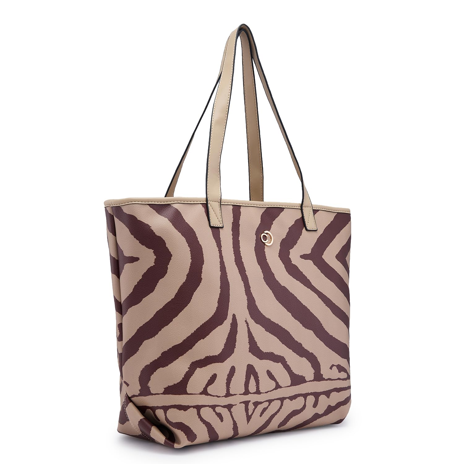 Caprese Zuzu Tote Large Beige – Elegant Shoulder Bag with Abstract Print, Spacious Office Tote, Quick Access Back Zip for Women, Stylish and Functional Design