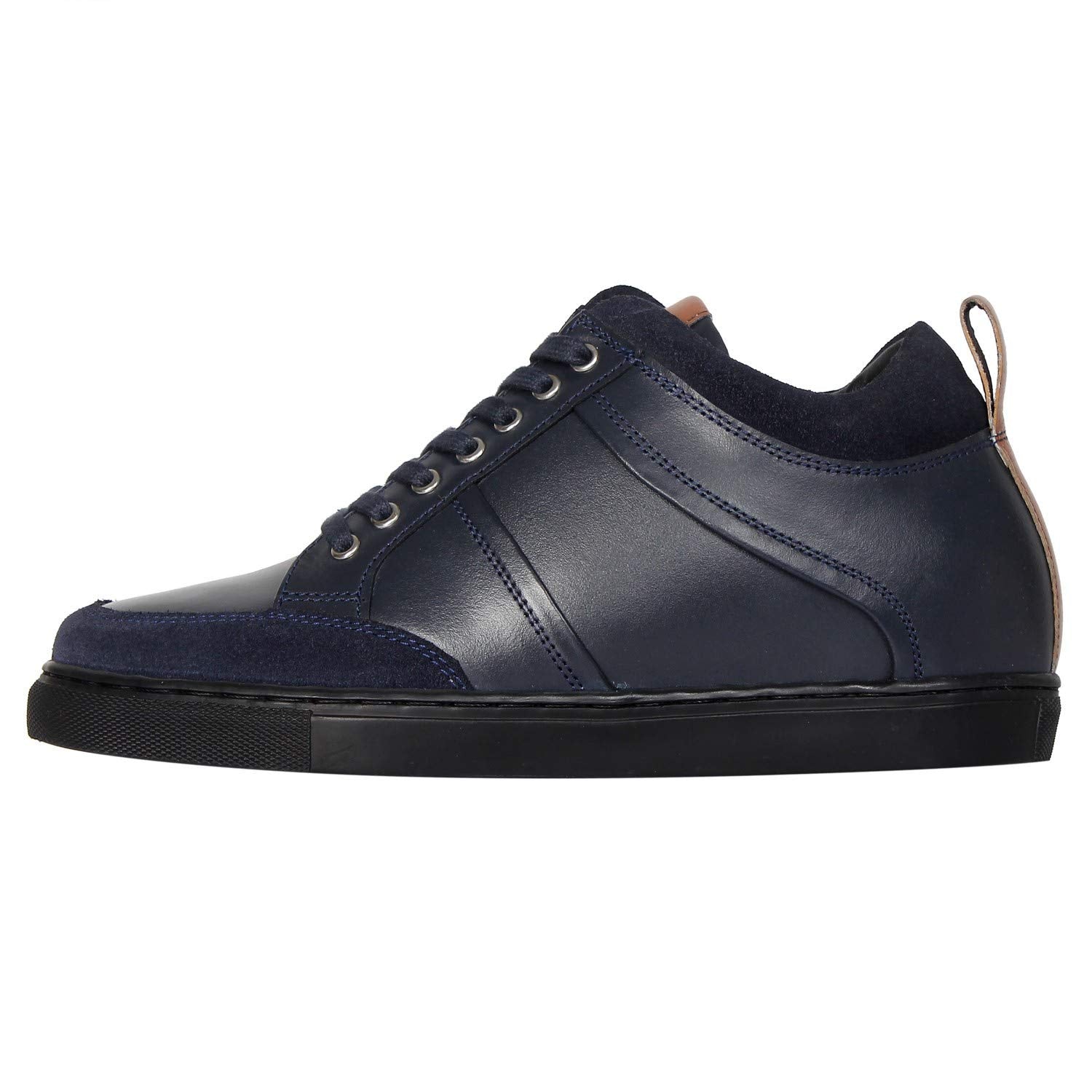 - Navy blue casual shoes for men with a hidden heel of 8 CM
