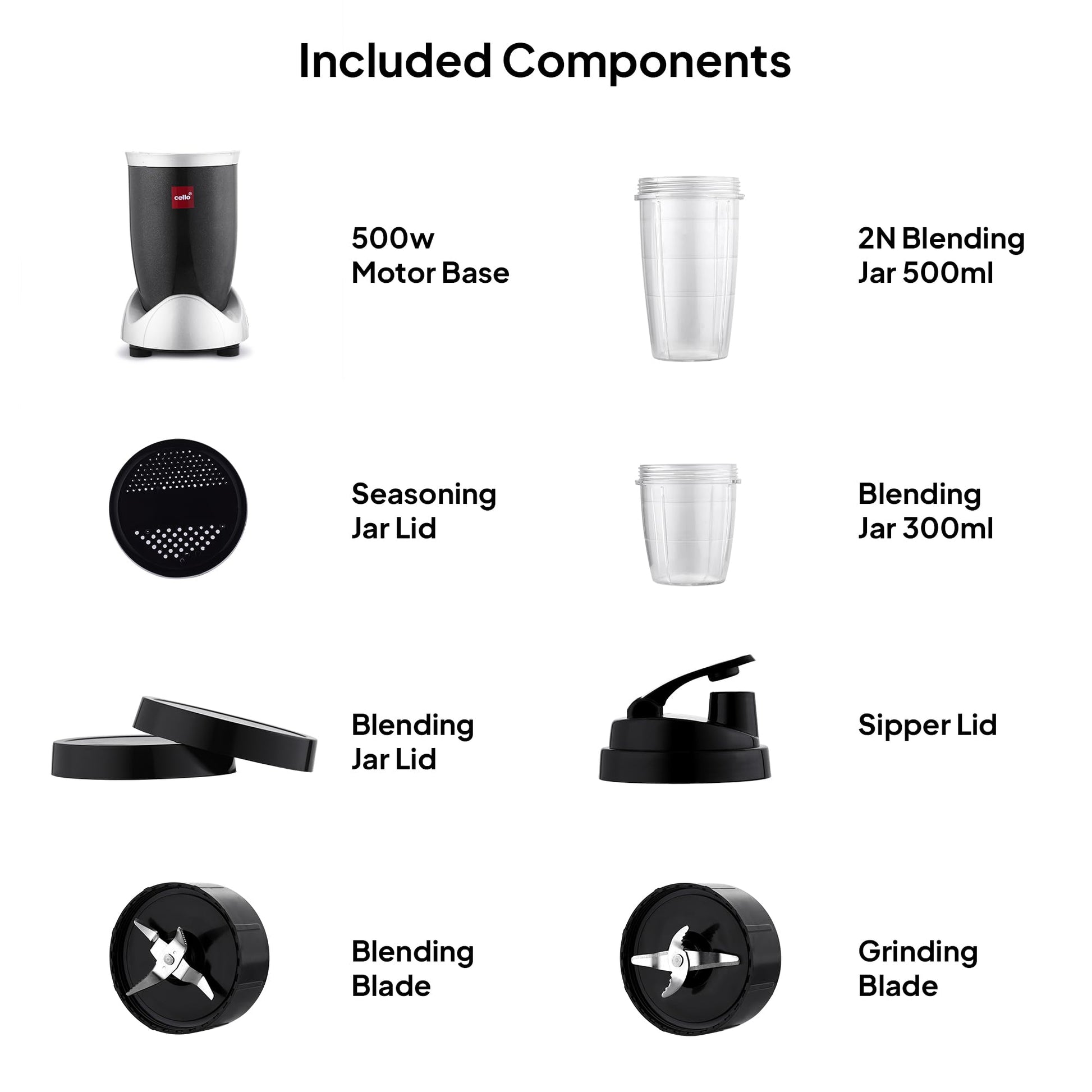 - Multipurpose Blender Jars:Comes with two versatile jars—a 500ml and a 300ml jar—that cater to various needs. Use the larger jar for blending smoothies, purees, or batters, while the smaller jar is perfect for grinding spices, coffee, or nuts.
