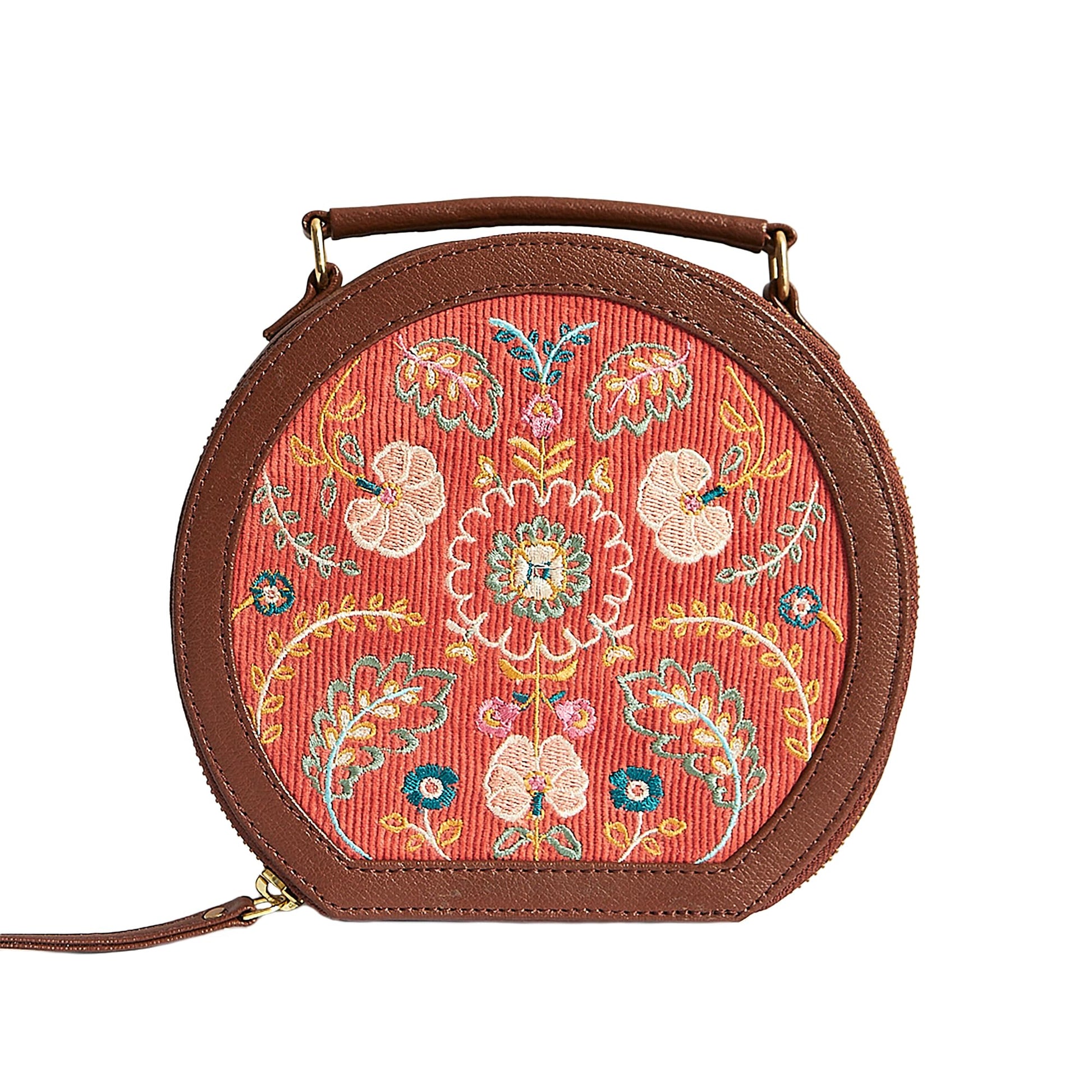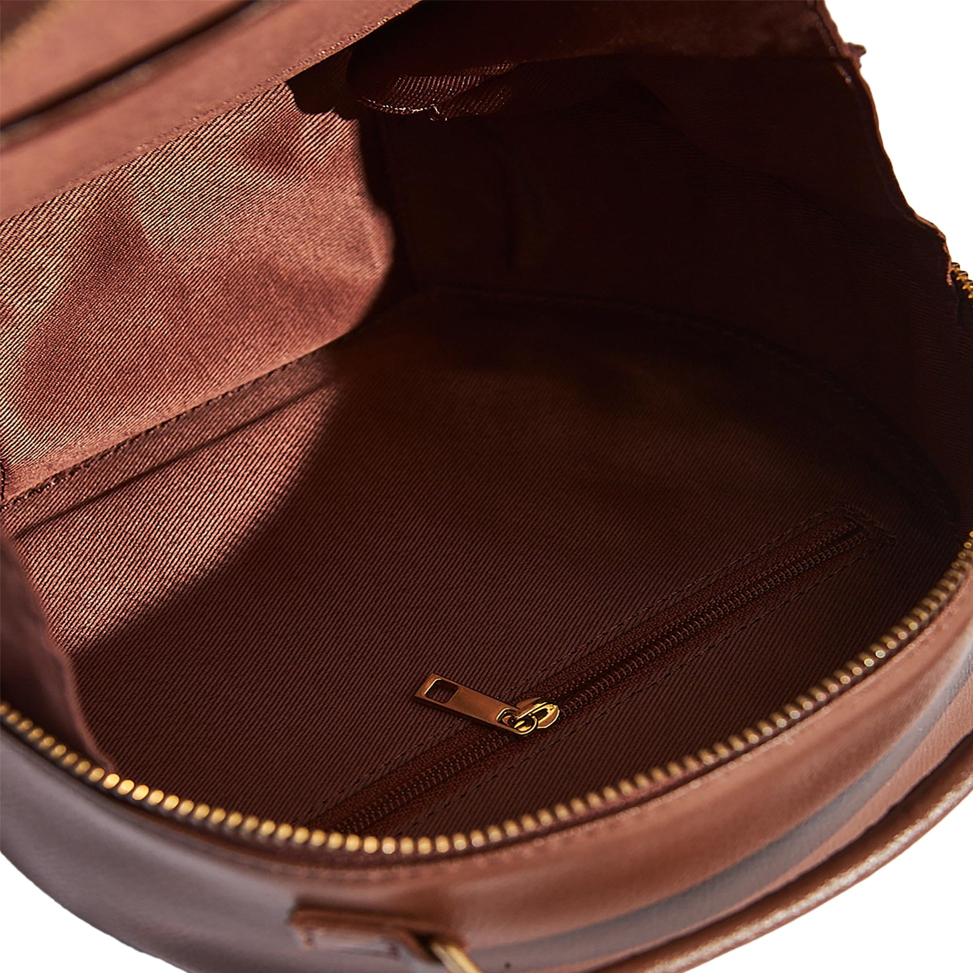 - The rounded bag comes with 2 main compartments and 2 internal pockets.