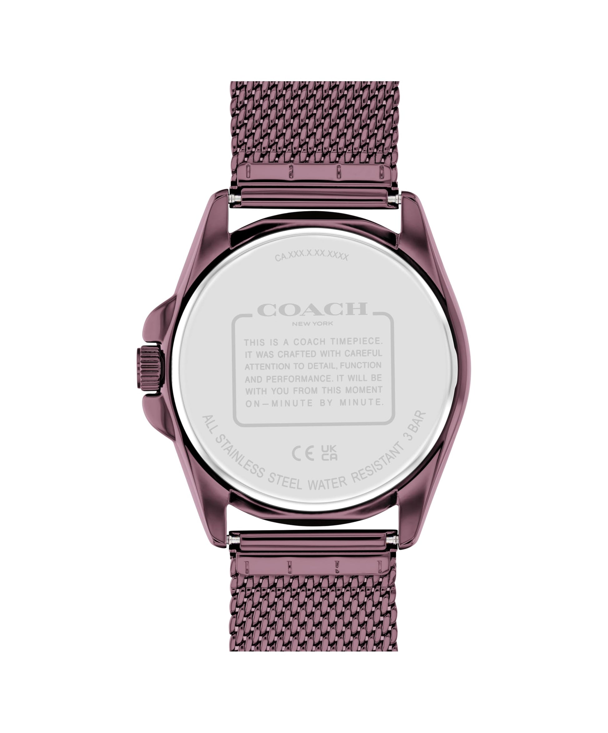 Coach Greyson Qtz Basic Calendar Purple Round Dial Women's Watch|Ionic Plated Purple Steel Material|Purple Color Band - 14504252
