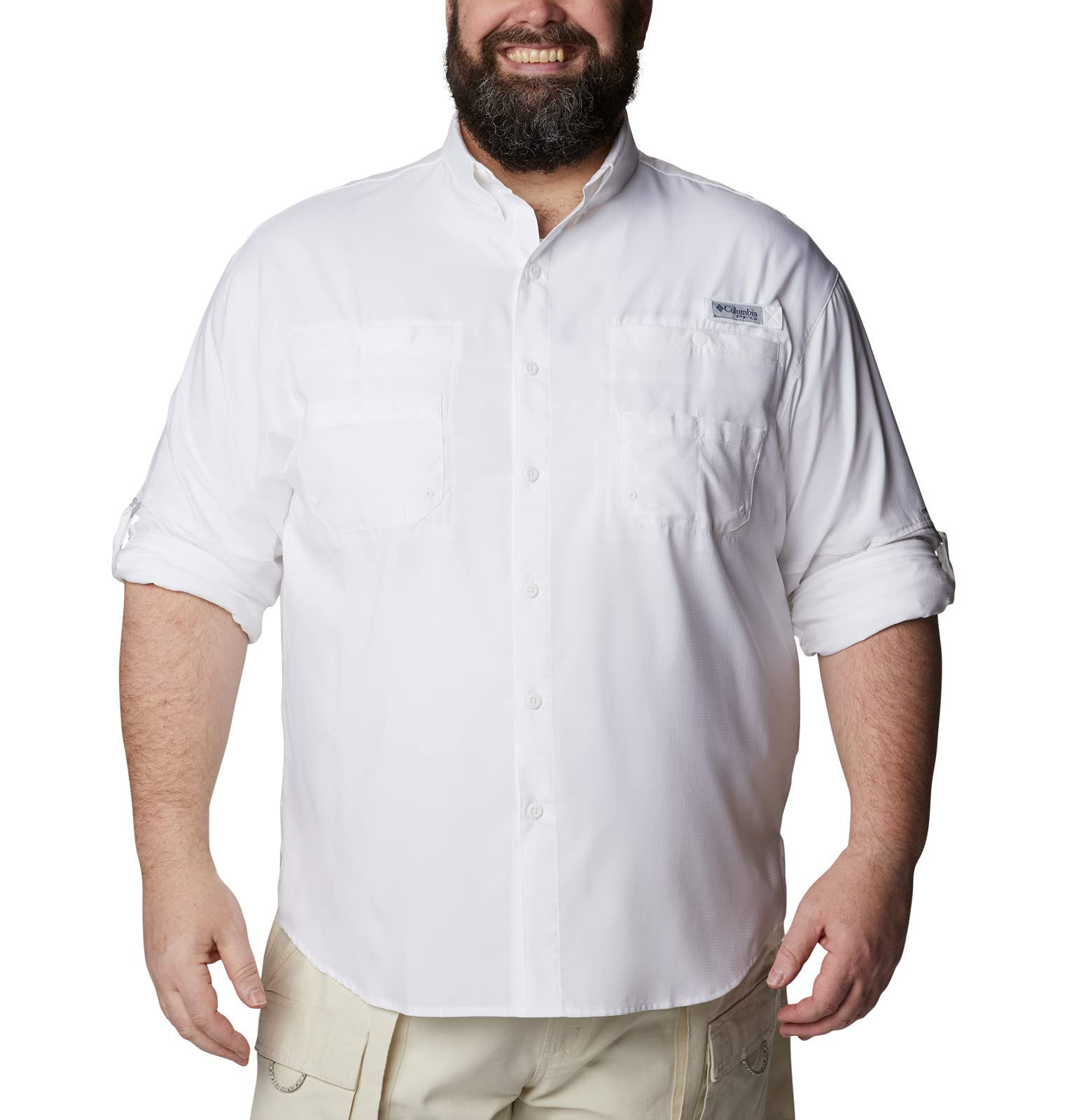 Columbia Men's Plain Loose Fit Synthetic Casual Shirt (FM7253-100_White_Large)