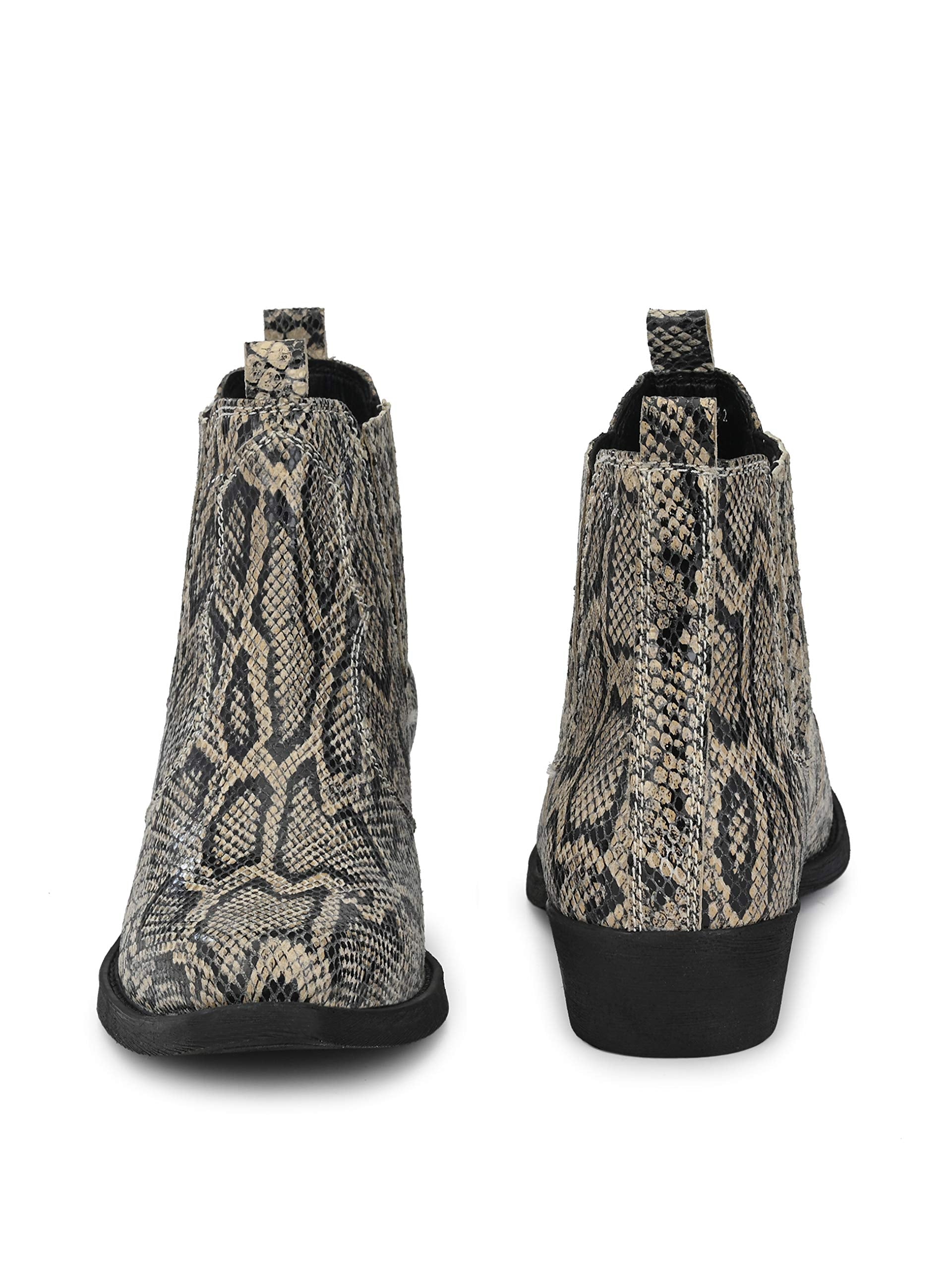 Delize Men's Grey Snake Printed Ankle Boots