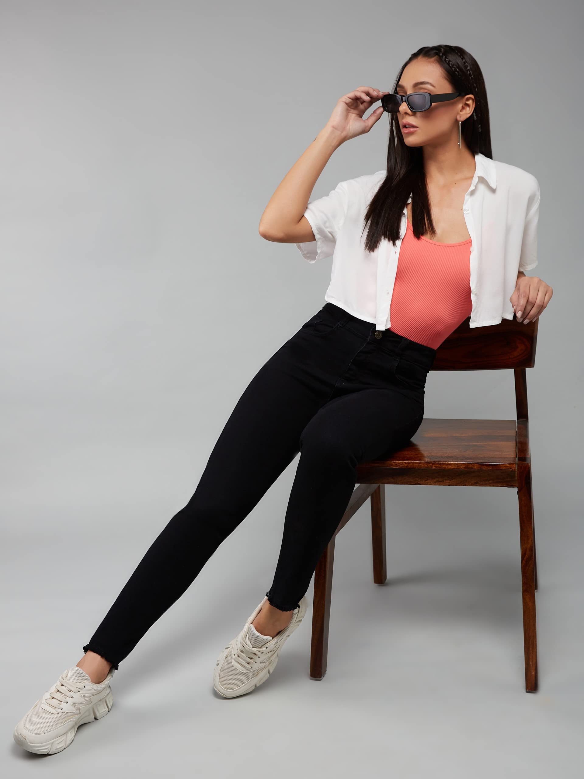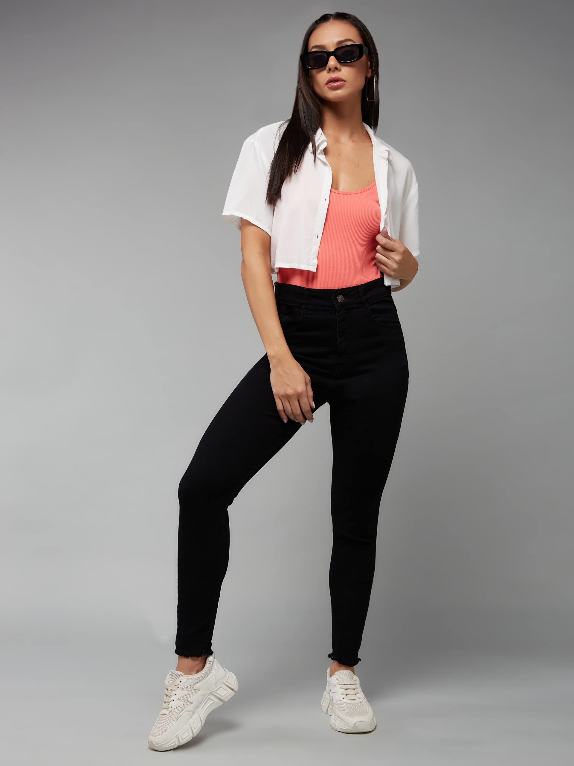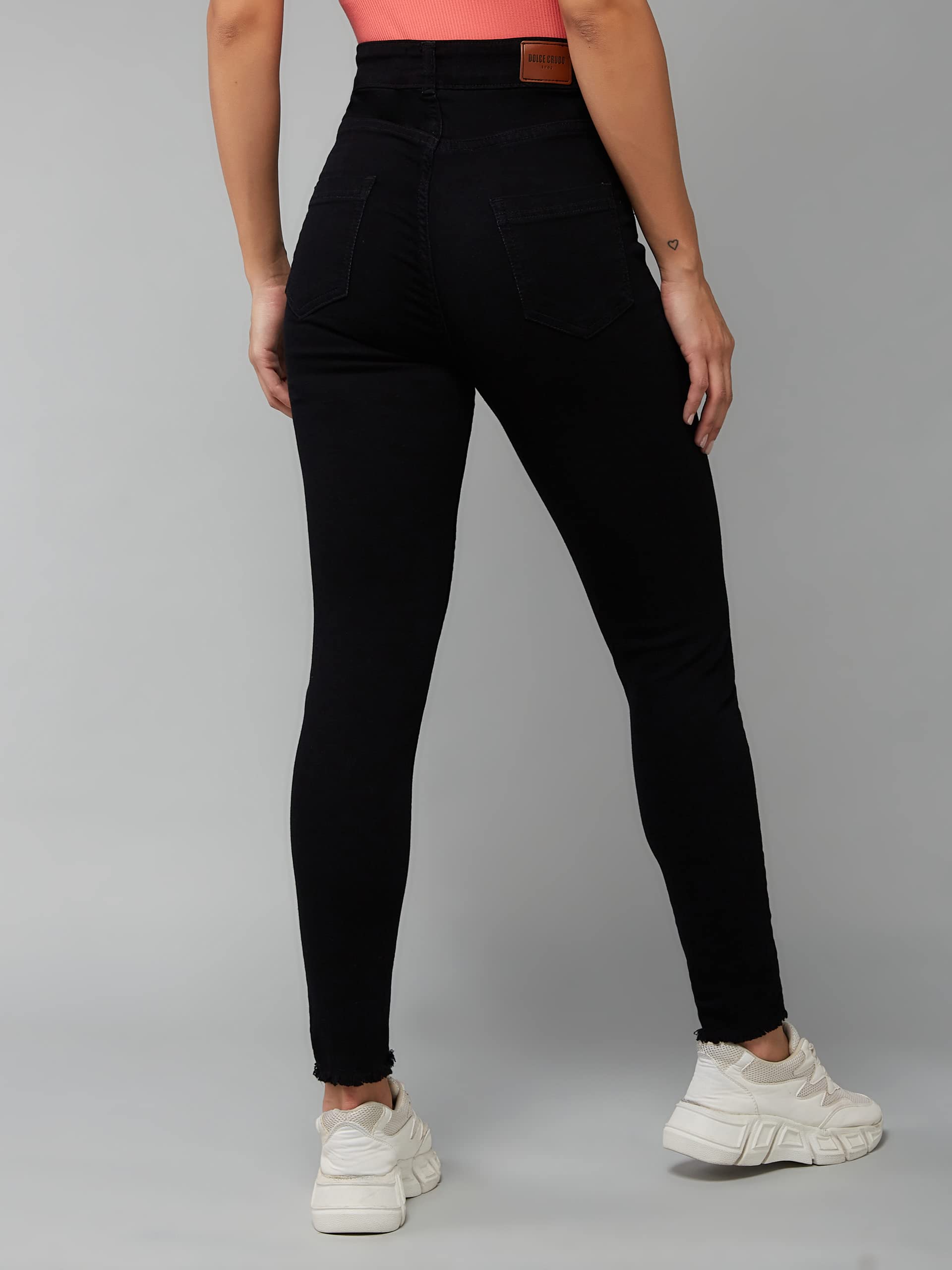 Dolce Crudo Women's Skinny Fringed Detailing High Rise Cropped Stretchable Denim Jeans (DOAW18DEN02-76-380-38, Jet Black, 38)