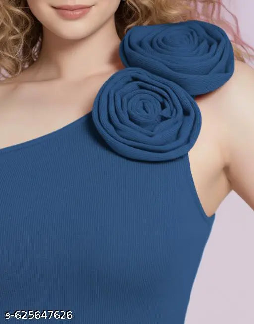 Step out in elegance with this stunning blue one-shoulder bodycon dress, featuring a sculpted silhouette and a beautiful coordinating floral appliqu at the shoulder. The fitted design hugs your curves, while the asymmetric neckline creates a modern, refined look perfect for cocktail events, parties, or special occasions. Effortlessly stylish and eye-catching, this dress pairs beautifully with strappy heels and minimal jewelry for an unforgettable ensemble.