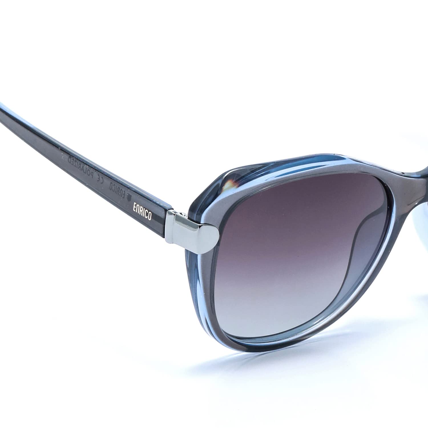ENRICO Sunglass with Grey Rectangle Frames | Black - Color Polycarbonate Material | Adults-Women Polarized Sunglasses with Cover Case, Large