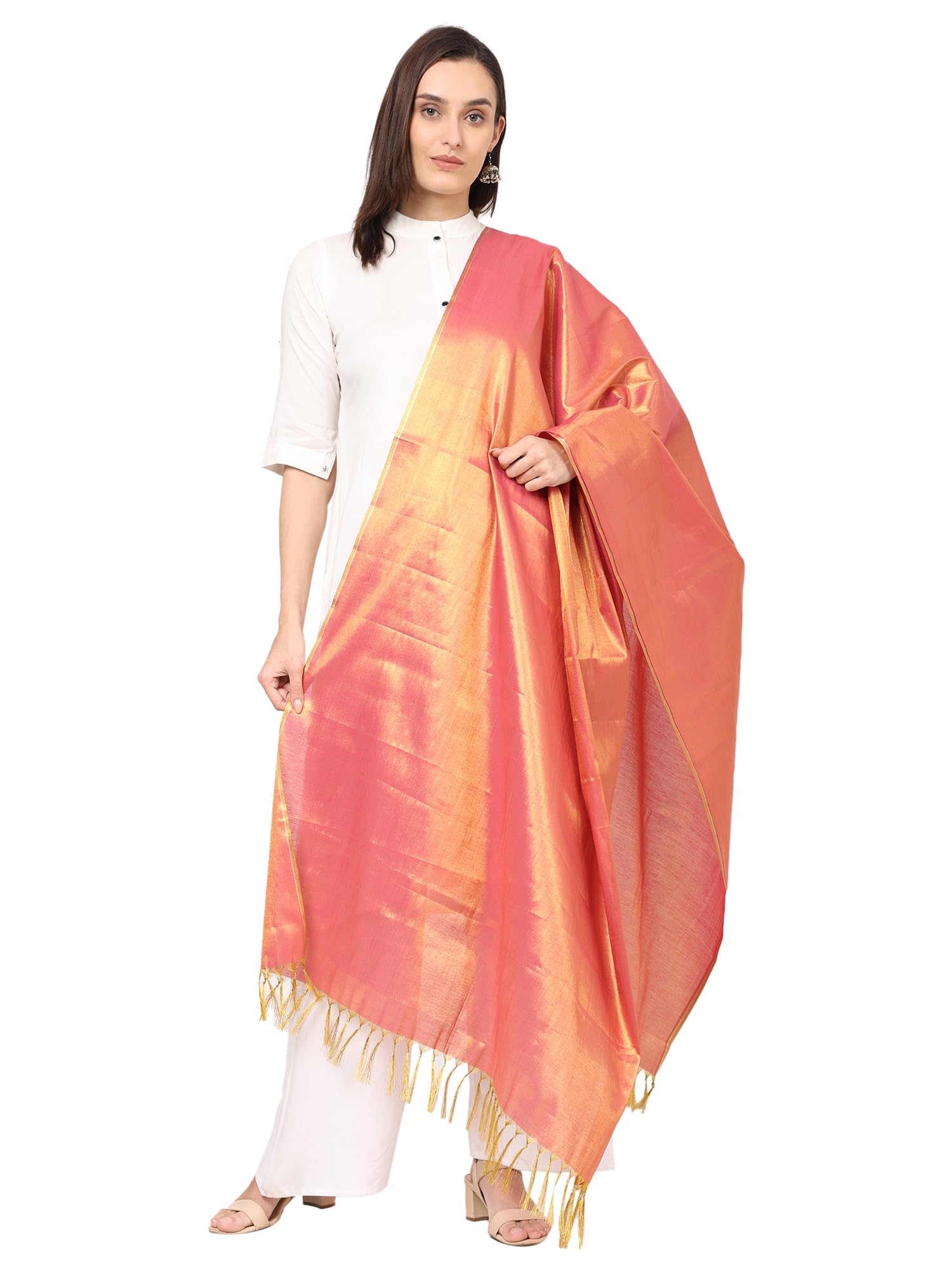 Fashily Womens Soild Silk Plain Dupatta|Shiny Jari Dupatta|Length 2.25M (Golden Rani)