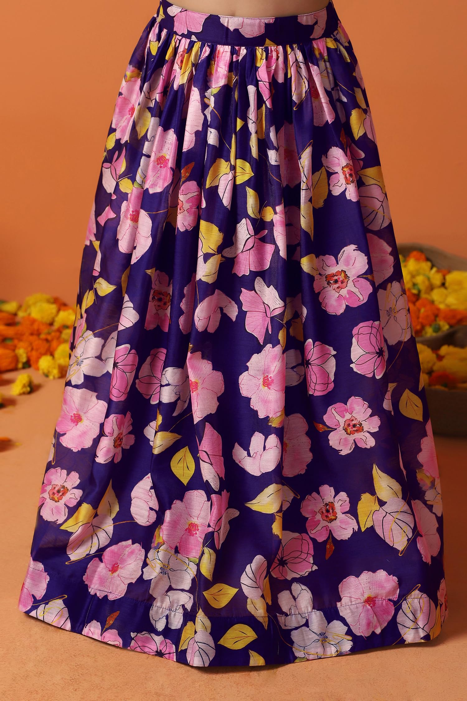 • Closure Type: Drawstring closure at the back of choli with partially elasticated waistband on lehenga — a stylish detail in kids lehenga choli.