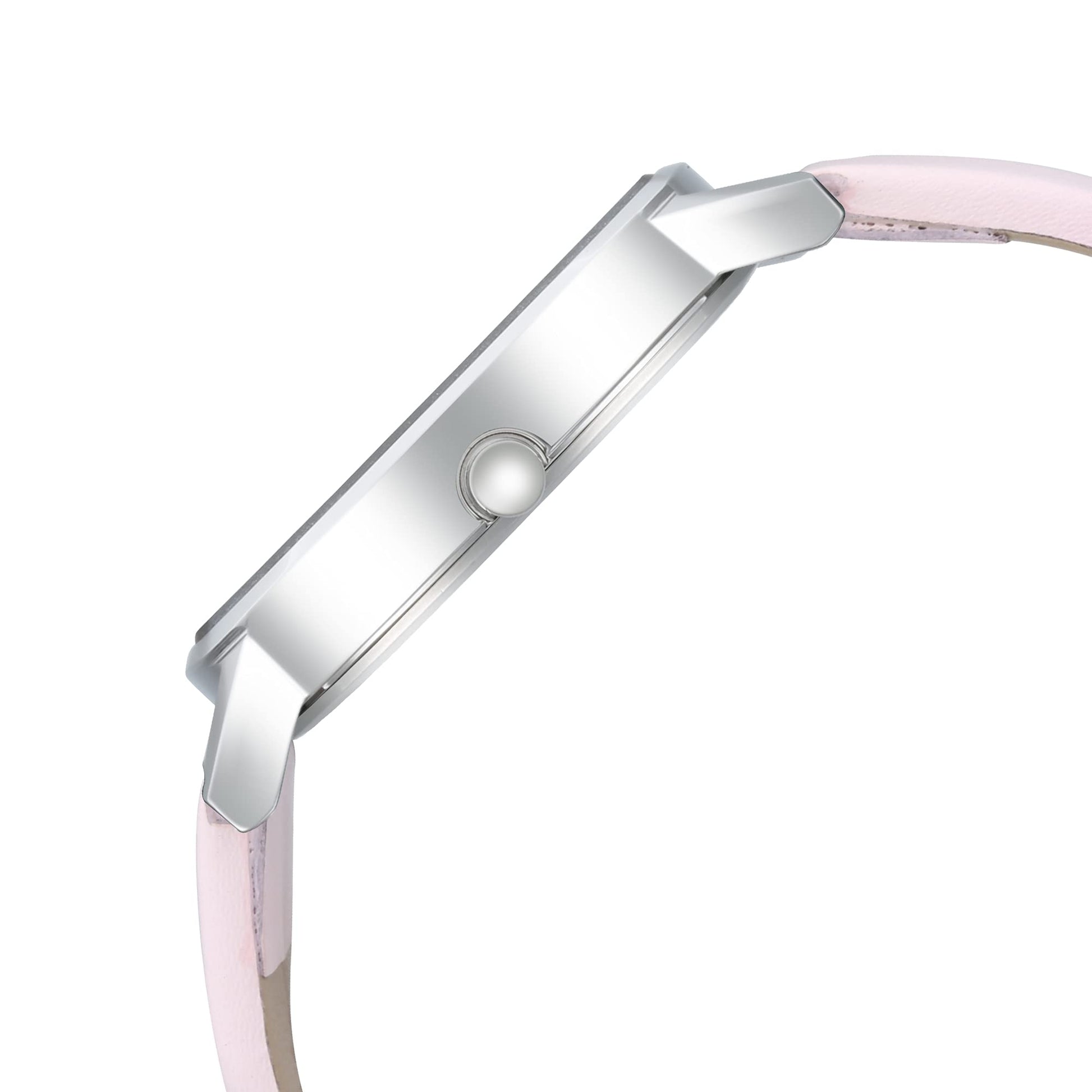 A trendy pink watch designed to get that perfect girly look. Wear this pink watch on your Sunday brunch with your friends Case dimension: 37.00x44.00x7.53 mm 3 ATM/30 m Water resistance. Leather Strap. Stainless steel back cover. High precision quartz analogue movement. 2 years warranty period