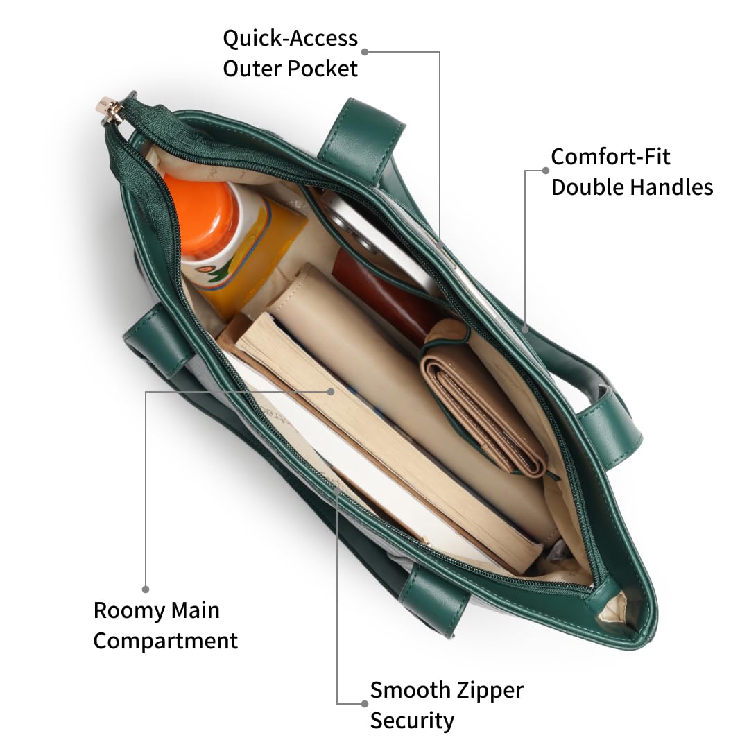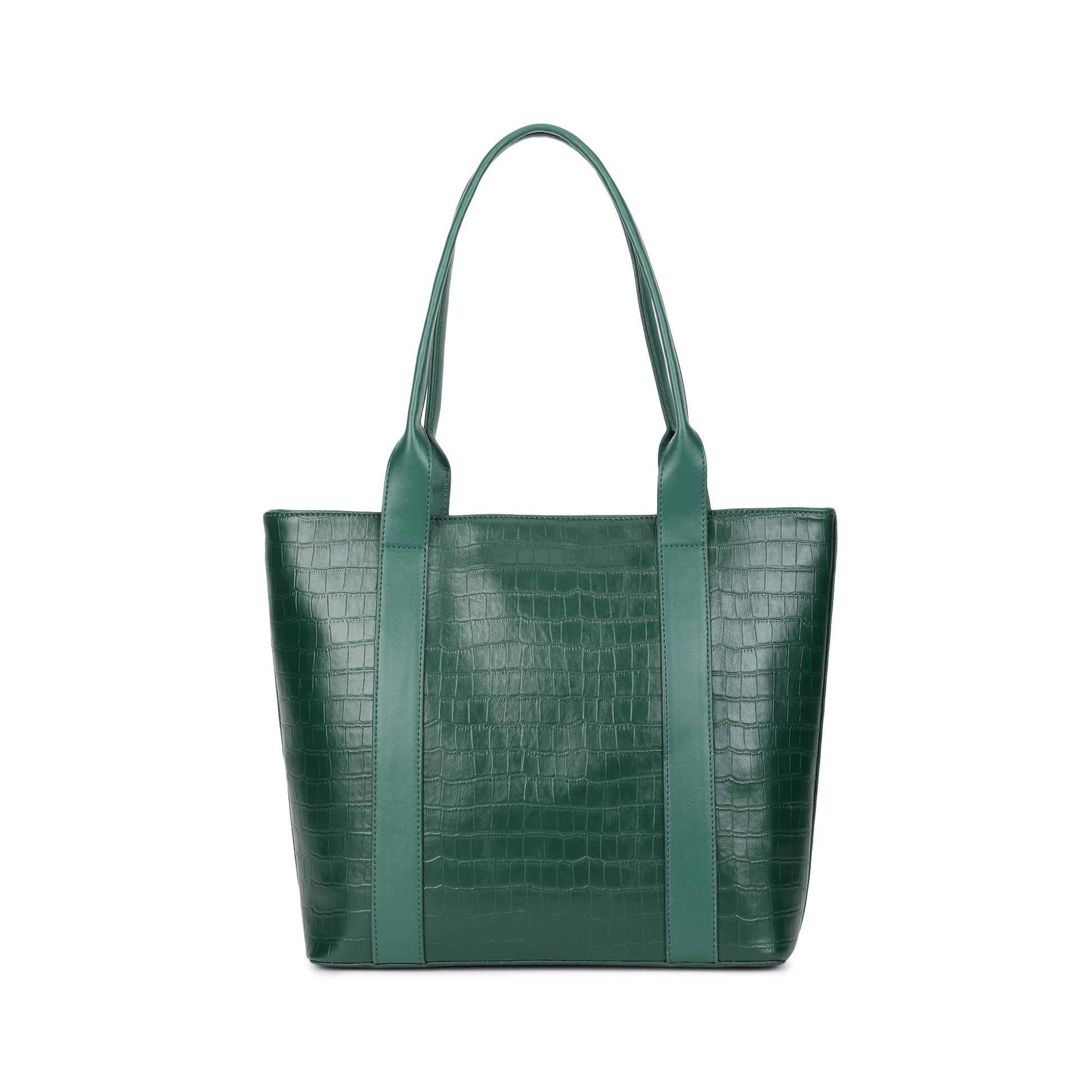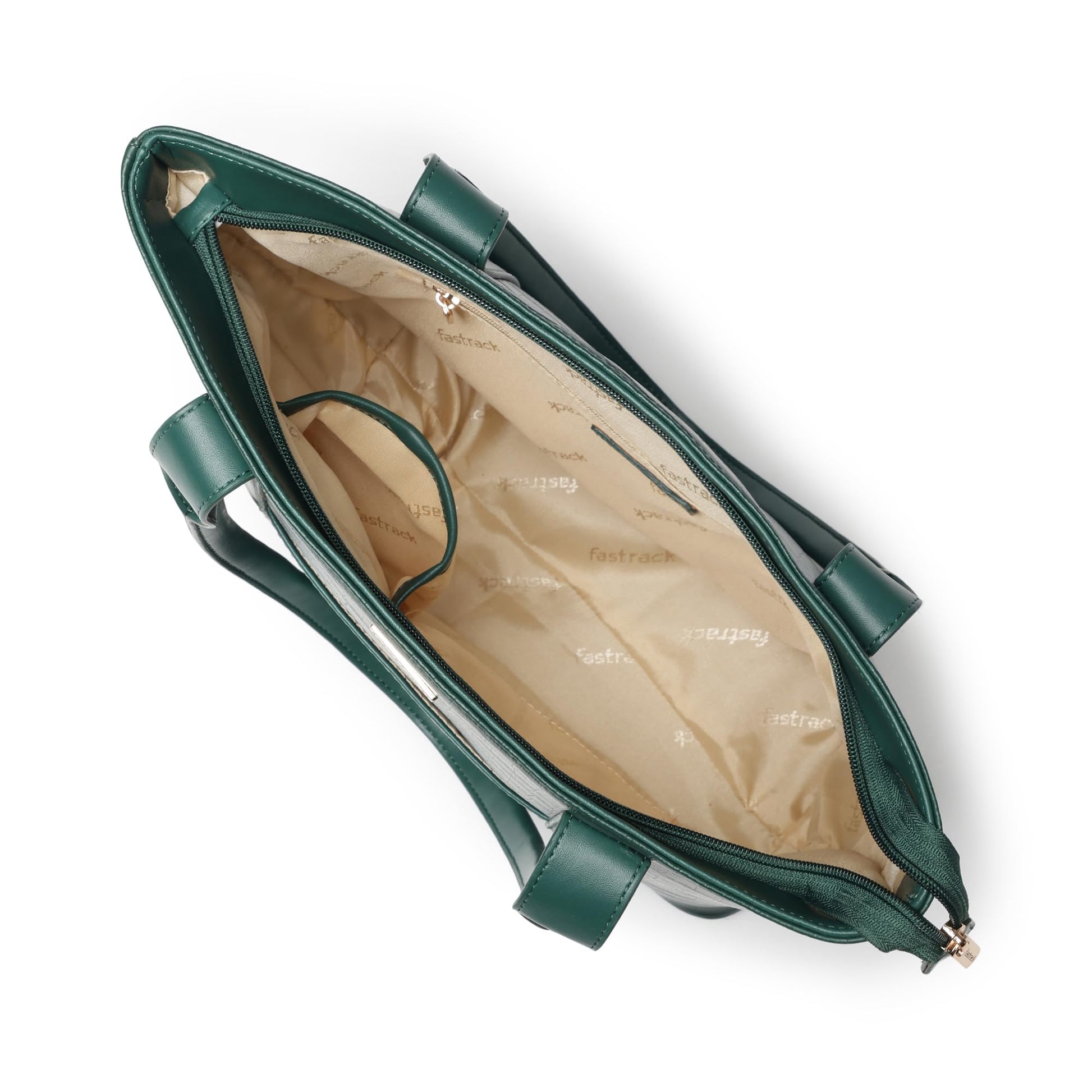 Fastrack Croco Crush Tote | green faux-leather Women's Handbag | Textured Croco Design with Gold Hardware | Double Handles, Zipper Closure & Organised Storage