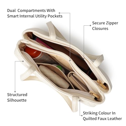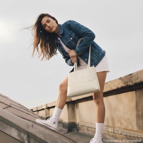 Fastrack GridGlam white Shoulder Bag | Faux-Leather Women’s Handbag | Quilted Shoulder Bag with Dual Zipper Compartments