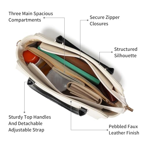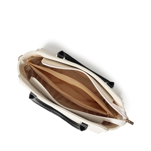 Fastrack PebbleEdge White Satchel | Faux-Leather Women’s Handbag | Structured Satchel with Triple Compartments & Gold Accents