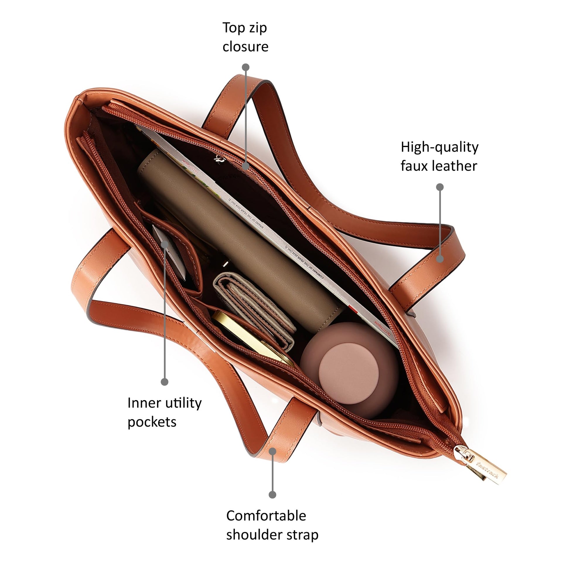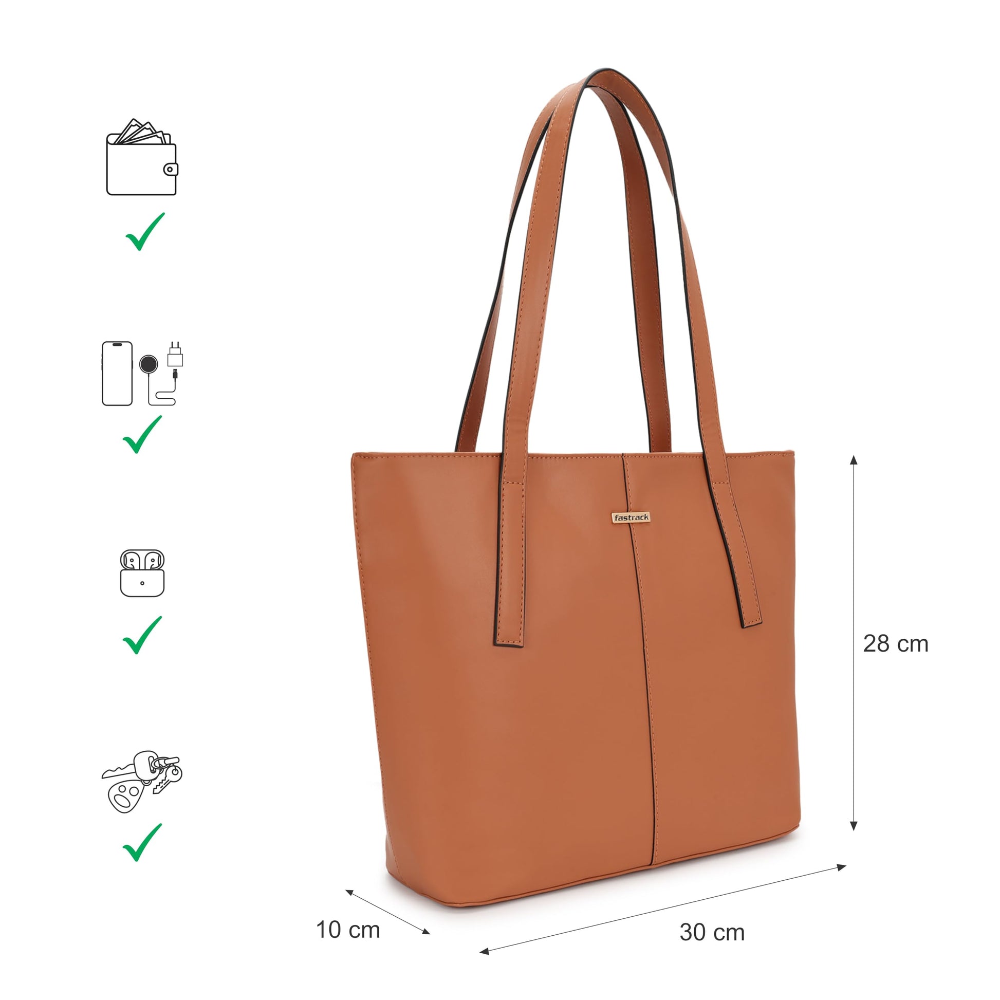 Fastrack Structured Solid Tote Bag for Women, Girls and Ladies with Top Zipper Closure | | Fits Upto 14" Laptop | Totes for Daily Office Use | Ladies Purse Handbag | Totes for Casual Carry