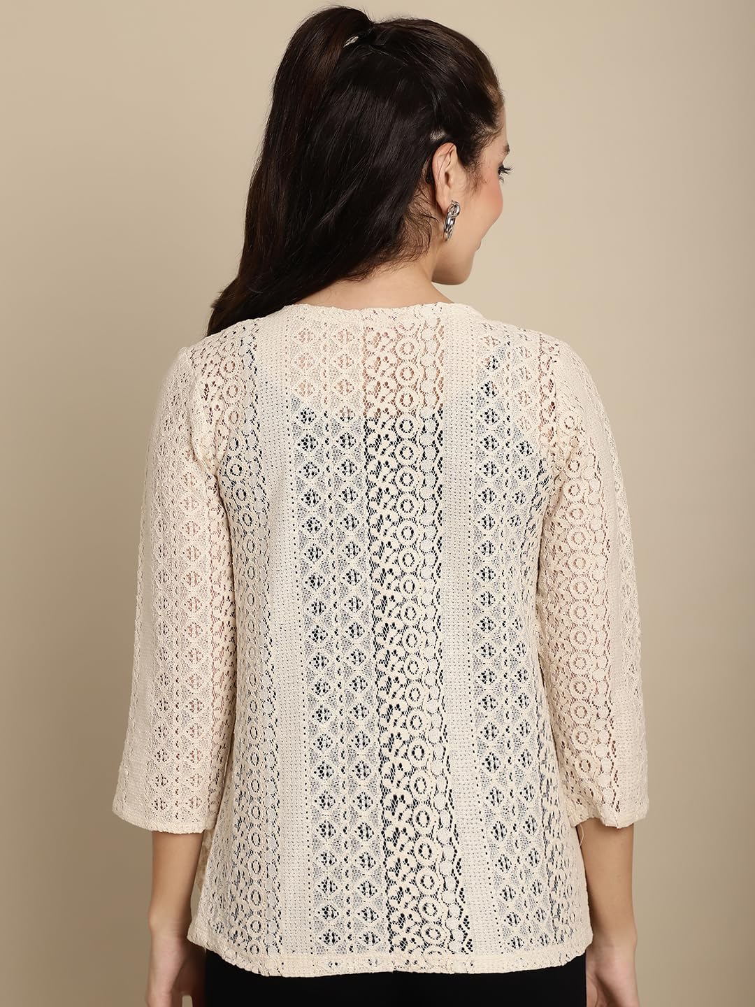 FineMe Women Trending Front Open | Cotton Self Designed 3/4th Sleeves Blazer Shrug 5XL Beige