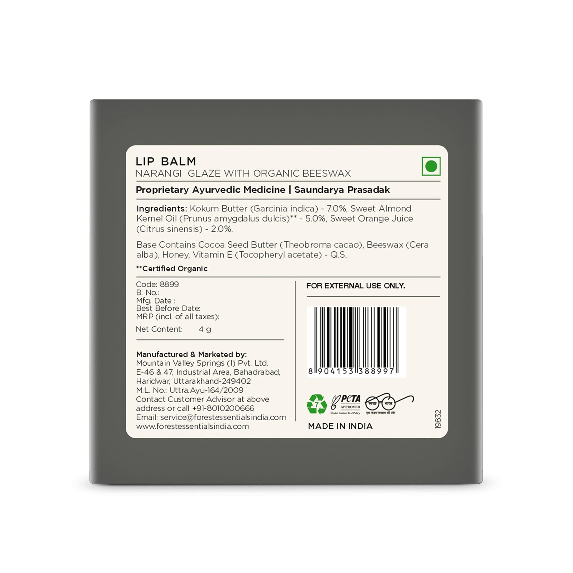 Forest Essentials Luscious Lip Balm Narangi Glaze | Ideal for Moisturizing Dry & Chapped Lips | Natural Lip Balm Infused With Sweet Narangi Juice and Almond Oil To Soften & Moisturize Lips With Glossy Finish | For Men & Women | 4 g