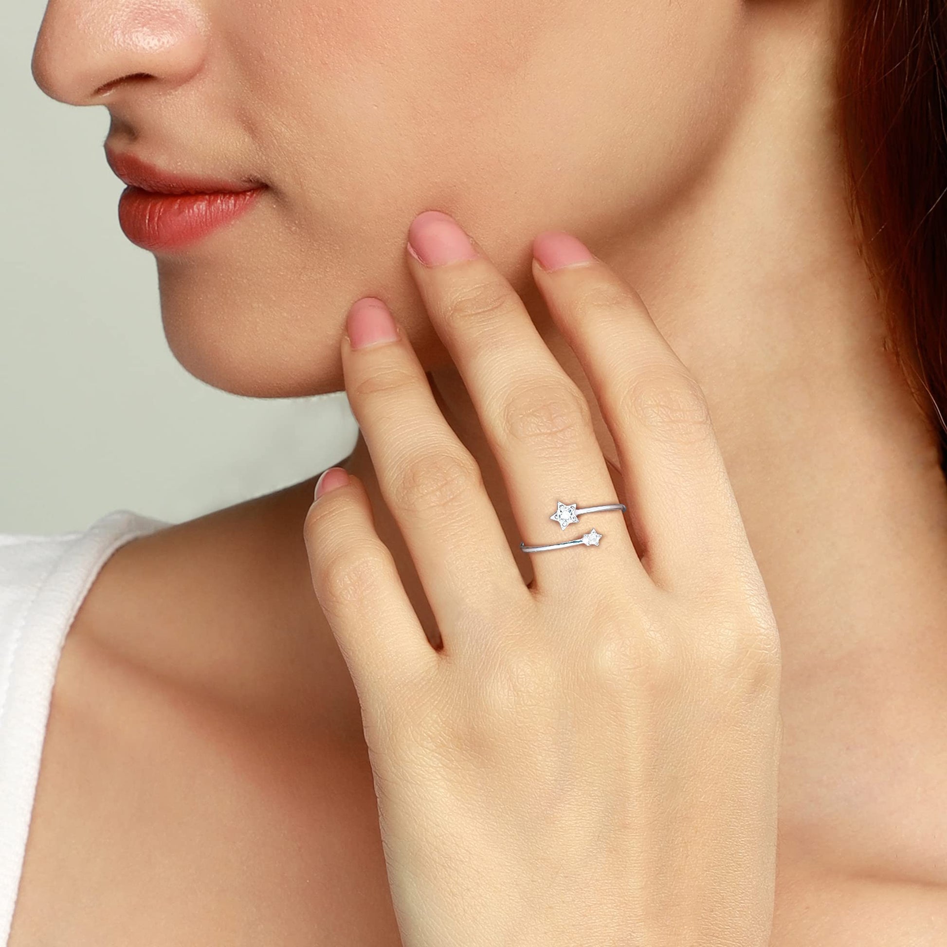 GIVA 925 Silver Dual Star Ring, Adjustable | Valentine Gift for Girlfriend Wife Women & Girls | With Certificate of Authenticity and 925 Stamp | 6 Month Warranty*