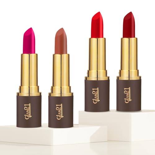 Glam21 Matte Envy Creamy Matte Lipstick for Women | Smudge & Transfer Proof | Intense Color & Bold Finish | Smooth & Light Weight | Up to 12H | Pack Of 4 | Each 3.5gm (COMBO-12)