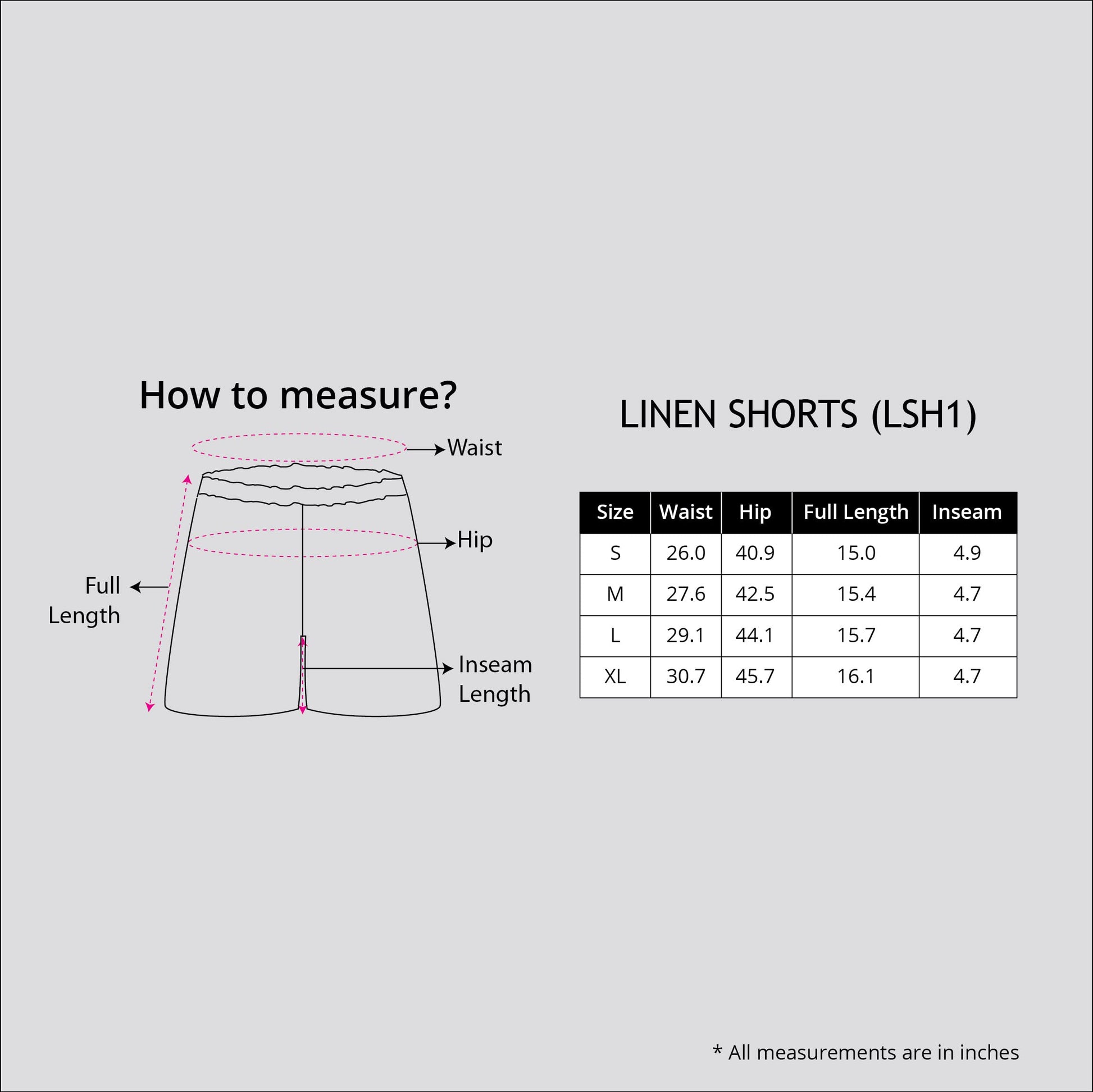 - Our Linen shorts have a mid-rise waist and an elasticized waistband with drawstring closure and side pockets. Designed mid-thigh-length, these lounge shorts are available in different prints and stripes to add a contemporary look to your ensemble making them perfect for lounging or casual outing.