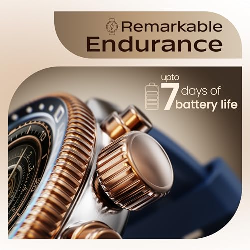 GOBOULT Newly Launched Saber Smart Watch 1.43'' AMOLED Display, BT Calling, Rotating Bezel, 200+Watchfaces, 700 Nits Brightness, AI Voice Assistant, SpO2 Monitoring, 120+ Sports Mode (Blue)