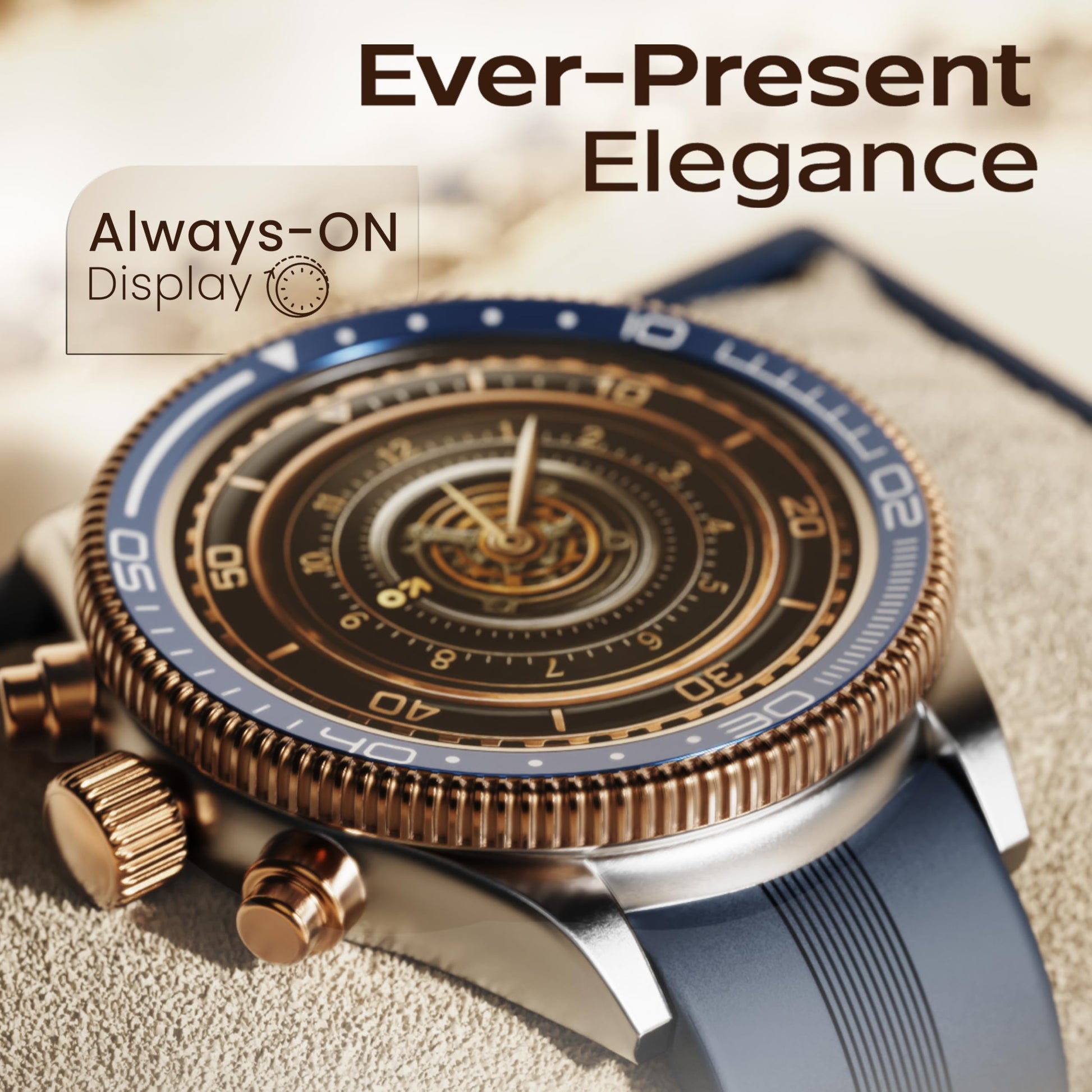 - ✅Premium Build with Action Bezel – A refined round dial with a functional rotating bezel for smooth navigation, available in Blue, Metal Black, and Titanium.