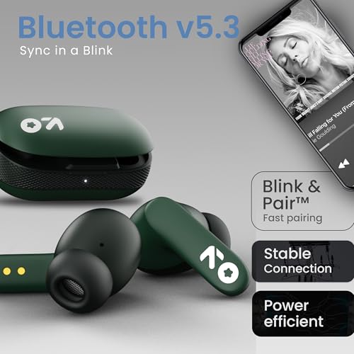 GOBOULT Z20 Made in India Bluetooth Ear Buds Wireless 51H Playtime, Clear Calling ENC Mic, Low Latency Gaming, 10mm Drivers Earbuds Buds Bluetooth Wireless Earphones (Pine Green)