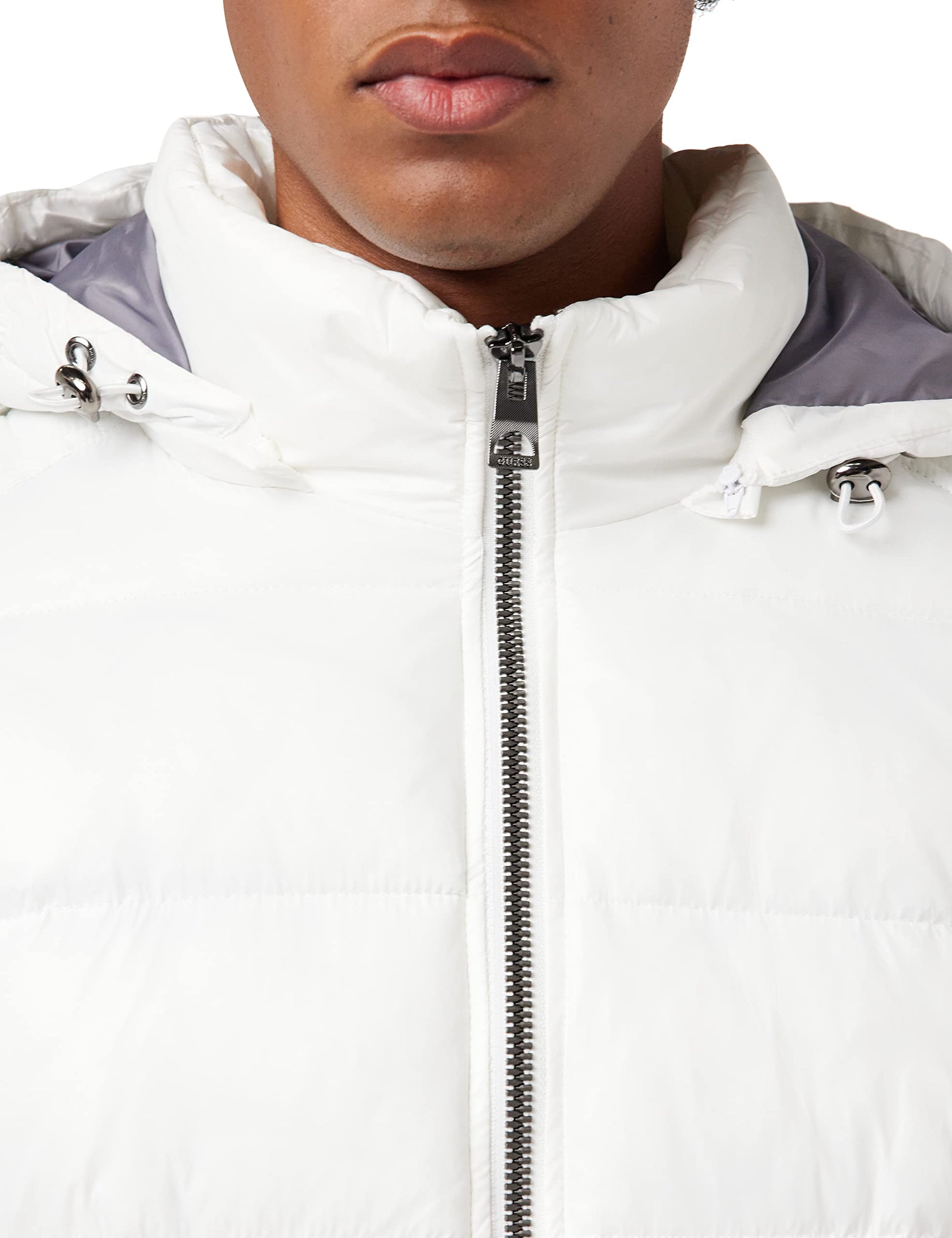 Guess Men's Mid Weight Puffer Jacket, White, Extra Large